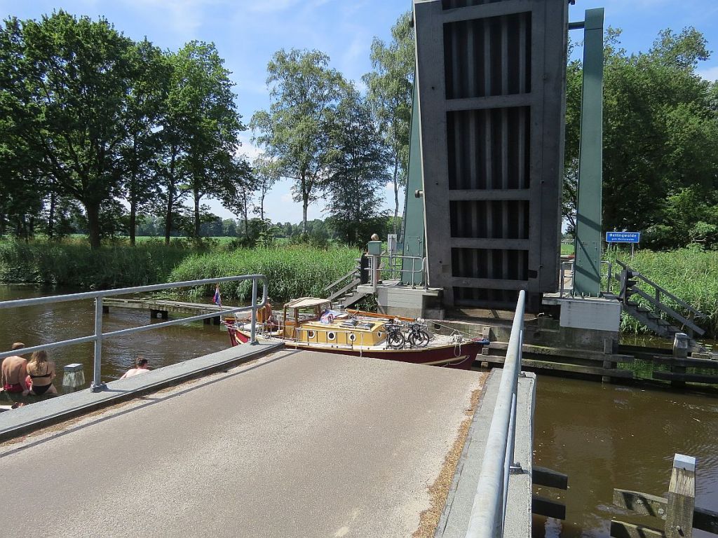Da es hier so viele Kanäle gibt, gibt es auch eine Unmenge von Klappbrücken. Auf den Kanälen sind diese in Eigenregie zu klappen und dann erst kann man mit dem Boot durchfahren. Auch die Brücke der Autobahn A7/A280 kann hochgeklappt werden. Wird es in Deutschland wohl eher nicht geben.