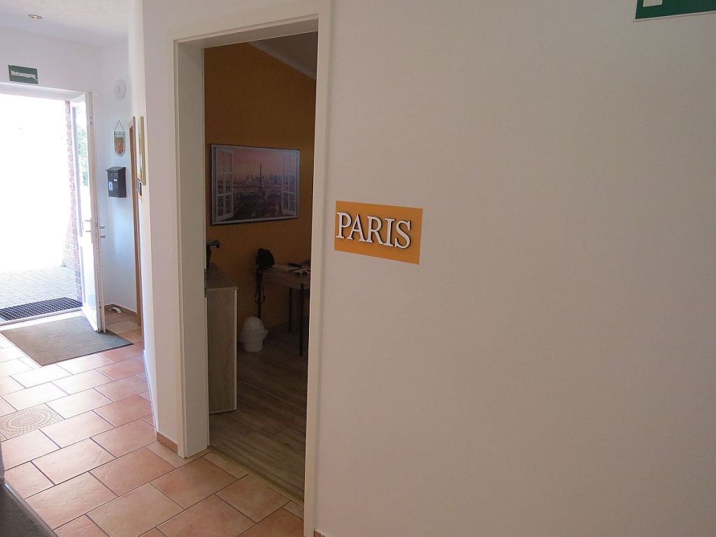 Die heutige Unterkunft, die Radlerscheue Heede, liegt am Emsradweg und ist voll belegt. Mein Zimmer heißt Paris. London und New York sind nebenan. So kommt internationaler Flair ins beschauliche Emsland.