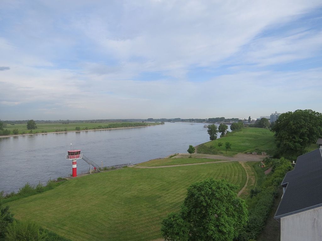 Aus der Innenstadt von Wesel ist man in wenigen Fahrminuten – es würde noch schneller gehen, wenn die Ampelphasen etwas freundlicher für Radfahrer und Fußgänger eingestellt wären – schon auf der Brücke über dem Rhein.