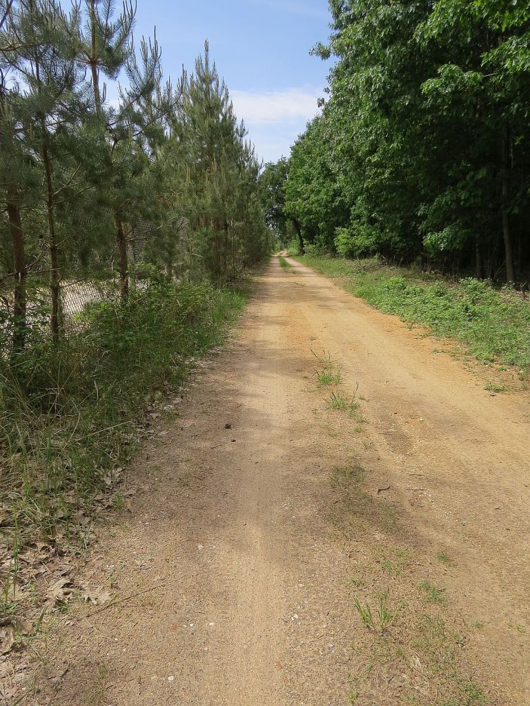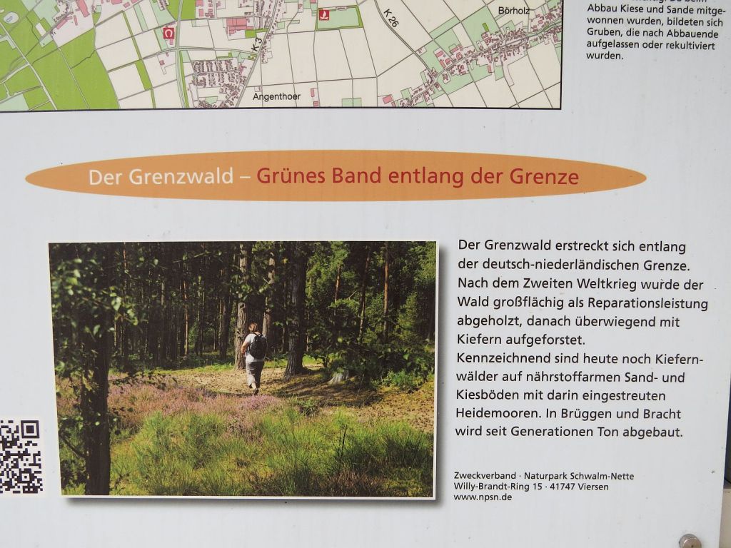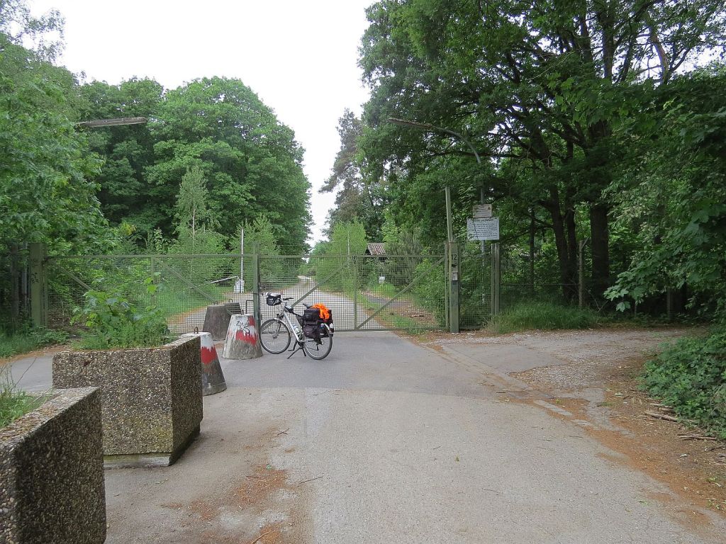 Auch in diesem Gebiet gab es früher ein großes Munitionsdepot der Engländer. Es waren hier Unmengen von Bomben/Granaten etc. bis hin zur Atombombe gelagert. Unvorstellbar, wie nah ich daran gewohnt habe. In Erinnerung bleibt mir auch ein riesiger Waldbrand, der über das Gebiet hinweg gegangen ist. Tagelang haben Feuerwehren, auch aus dem Ruhrgebiet, hier Wassermengen versprüht. Zum Glück waren einige Seen und auch die Schwalm in der Nähe und daher kein Problem mit dem Wasser. Heute fährt man auf schönen Wegen durch dieses ehemalige Depot. Ich bin allerdings am Außenbereich entlang geradelt. Direkt immer an der Grenze entlang.