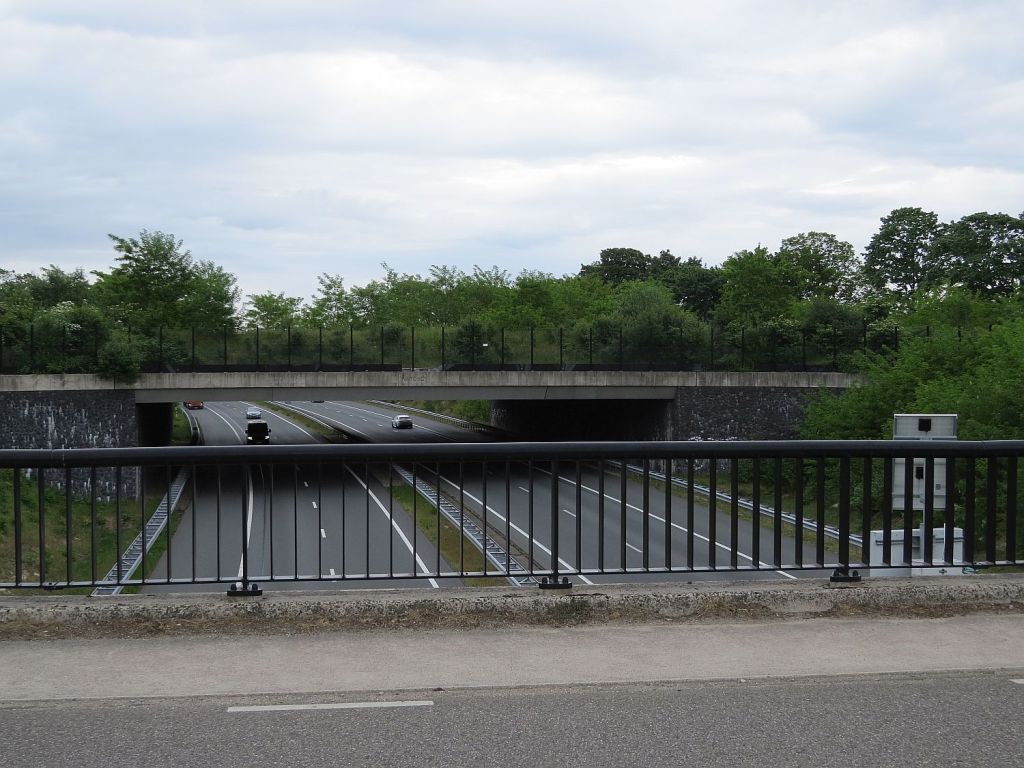 Nicht unbedingt schön, aber auch kaum Verkehr und daher entspannt für uns Radfahrer. Bei Venlo kommen zwei Autobahnen aus Deutschland. Beide muss man kreuzen. An der A 61 gibt es sogar eine Wildbrücke.