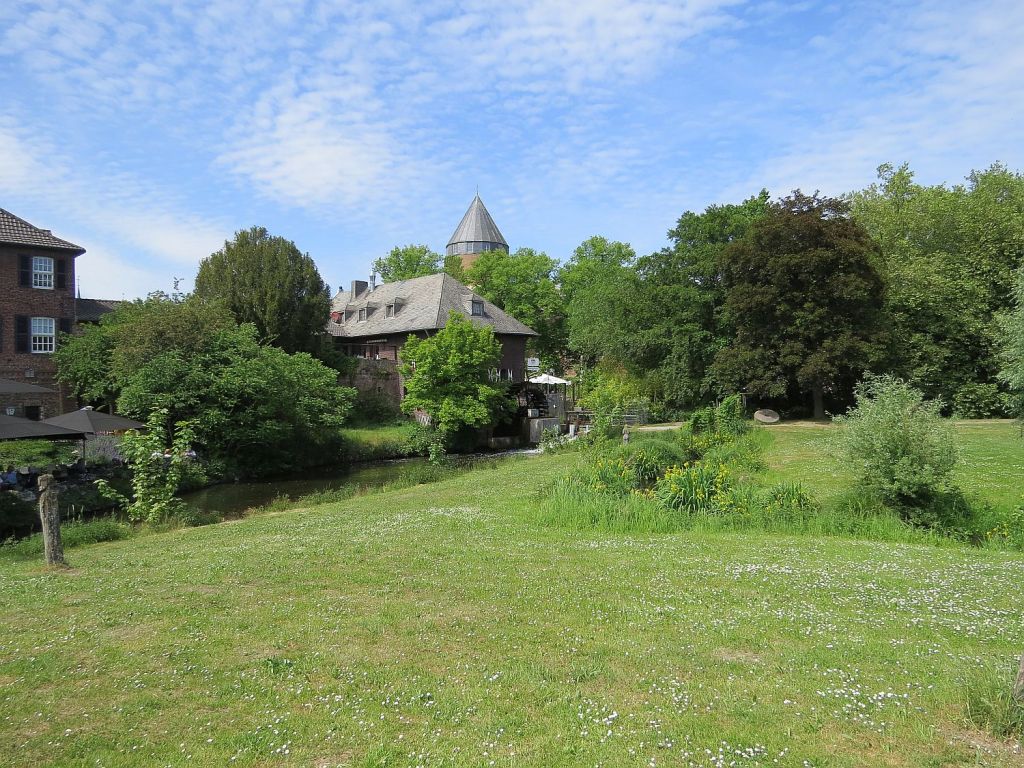Der erste Blick gilt der Burg Brüggen im Hintergrund. Davor eine von vielen Wassermühlen im Verlauf der Schwalm.