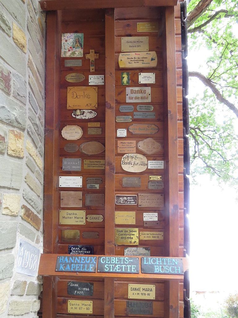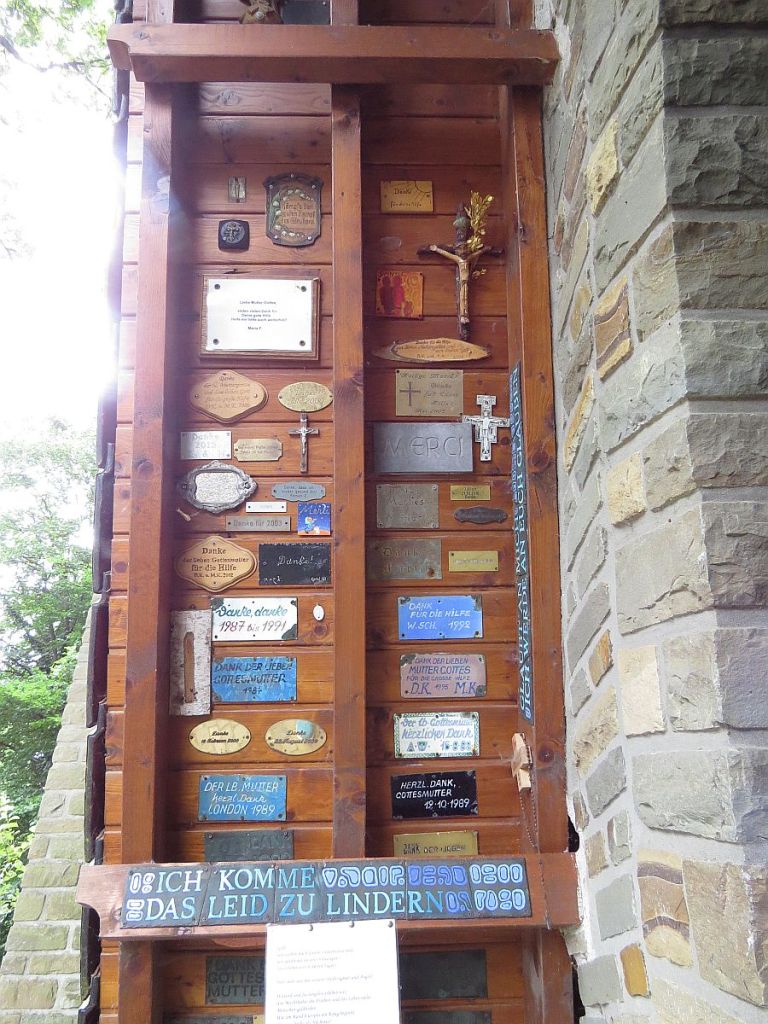 Hier an der Kapelle zur Jungfrau der Armen ergab sich ein Gespräch mit einer 95!!-jährigen Dame. Auch sie hatte ein Schild angebracht.