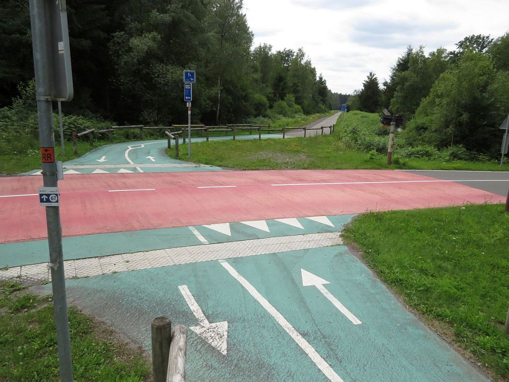 …. kreuzt man immer wieder Forstwege oder kleine Straßen. An die Sicherheit für die Radfahrer wurde in jedem Fall gedacht.