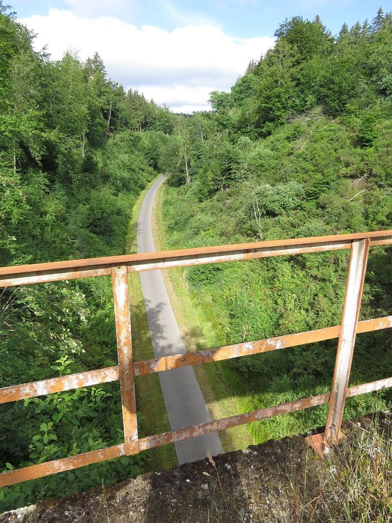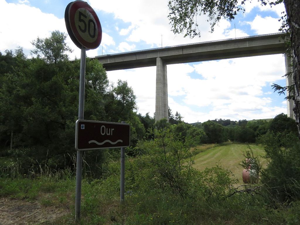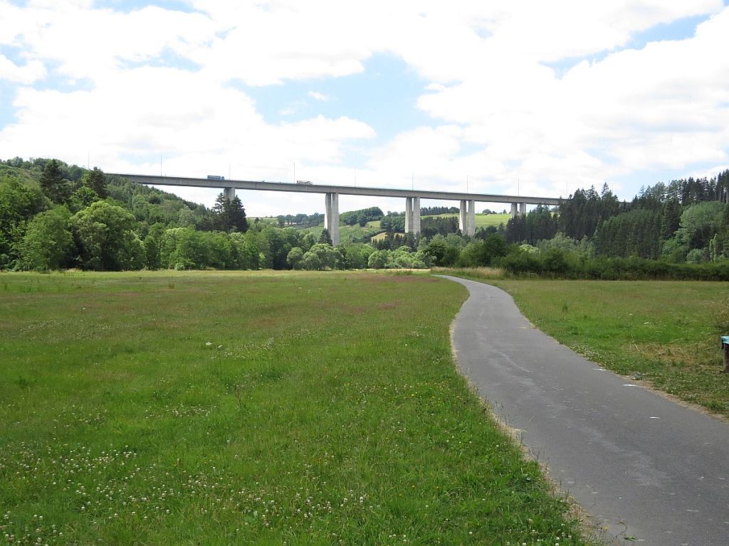 Es rollte wunderschön bergab und in weiter Entfernung konnte ich schon die Ourtalbrücke der A 60 sehen. Später fuhr ich auch unten ihr durch.