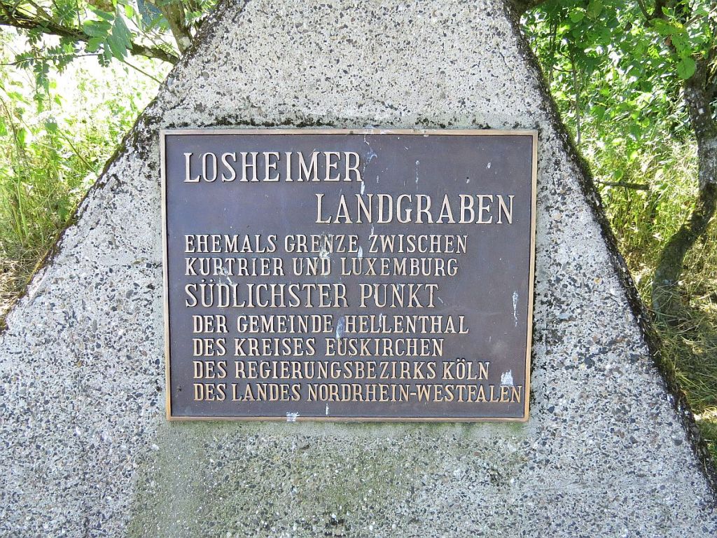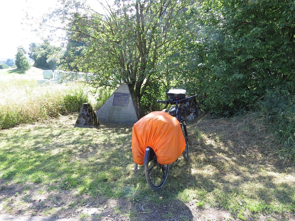 Das nächste Etappenziel war der südlichste Punkt von NRW. Hierzu musste ich einmal durch ein Tal und dann auch wieder den Berg rauf, um nach Ormont zu kommen. Hatte also schon zu Beginn der Tour so manche Höhen zu bewältigen. Allerdings findet man überhaupt kein Schild, das auf diesen Punkt aufmerksam macht. Gut, dass ich meine Karten habe. Wäre allerdings später fast selber vorbeigefahren, weil mein Weg nach links ging und der Punkt hinter einem Gebüsch versteckt lag. Weil ich dort aber wieder Stücke des Westwalls gesehen habe, bin ich kurz rechts abgefahren und dort war dann die Stelle.