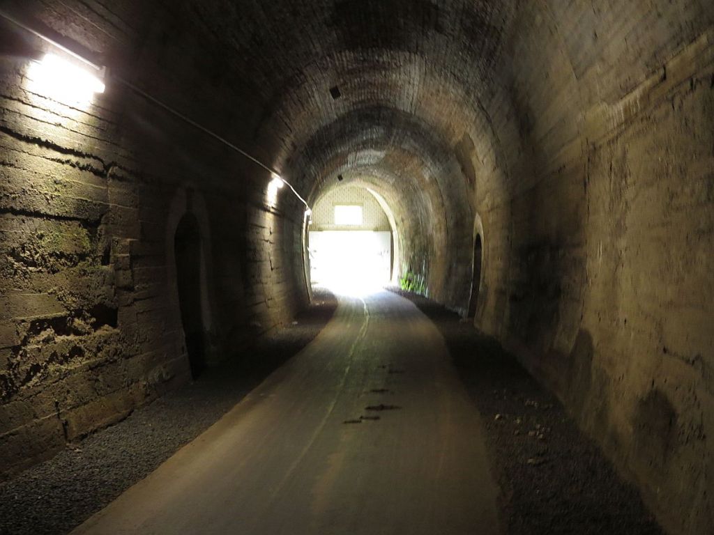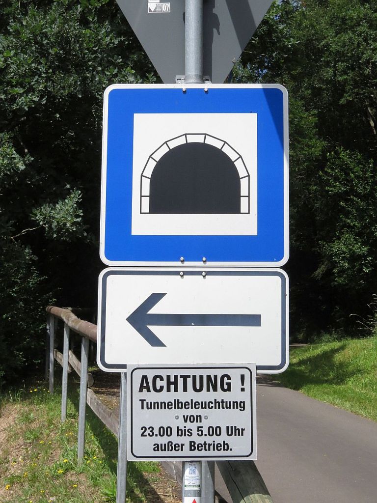 Eine Abfahrt später sollte ich dann für längere Zeit wieder eine alte Bahntrasse nutzen. Diesmal bergab und habe somit fast 4 km nicht treten müssen. Es rollte von ganz allein. Zuvor stand jedoch noch die Durchfahrt durch den Bleialfer Tunnel an. Dieser hat eine Länge von 400 m und drinnen wurde es schon sehr frisch.