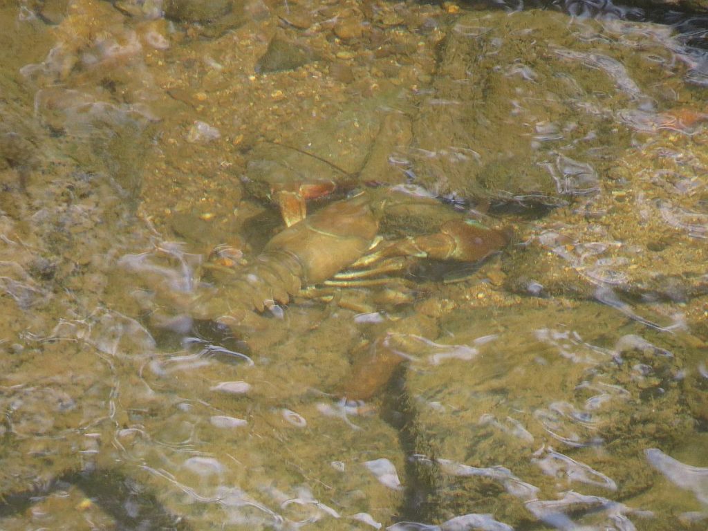 An der Mündung des Ihrenbaches in die Our hatte ich Glück. Ich konnte einen Krebs im Wasser sehen. Nach dem Bild war er auch schon wieder verschwunden.