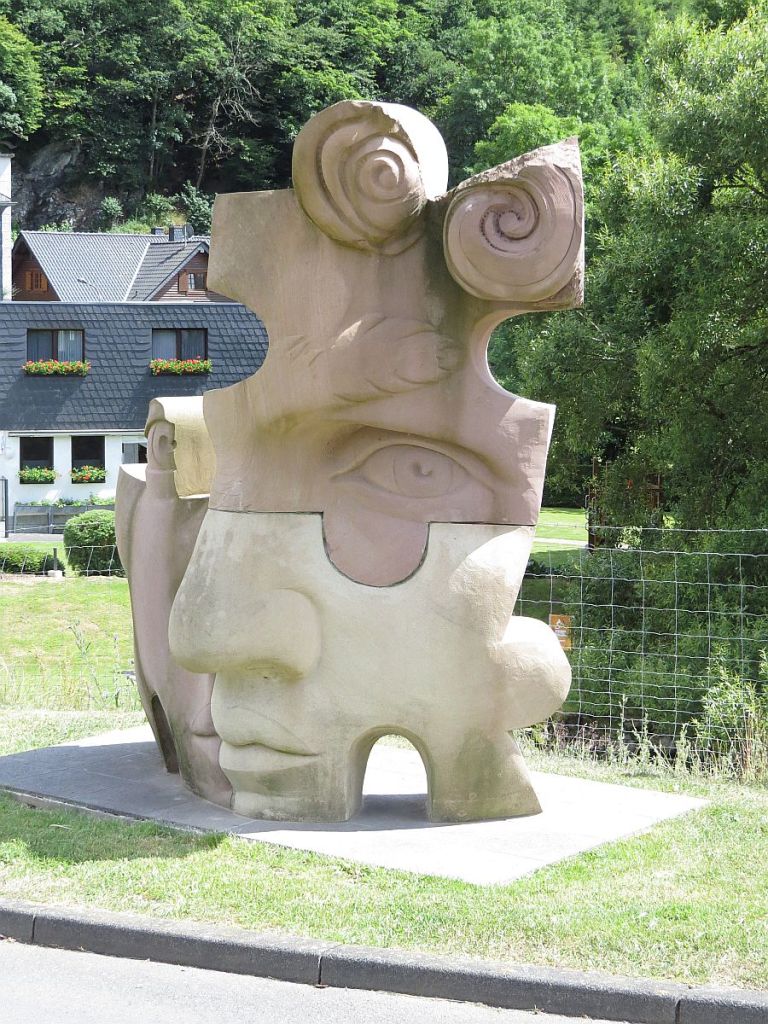 In dem Tal der Our gibt es einen Skulpturenweg. An der Brücke über die Our zum Hotel steht der „Dreiländereck David“.