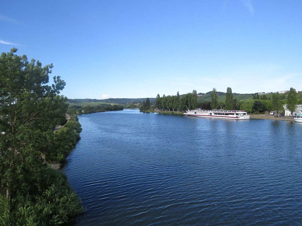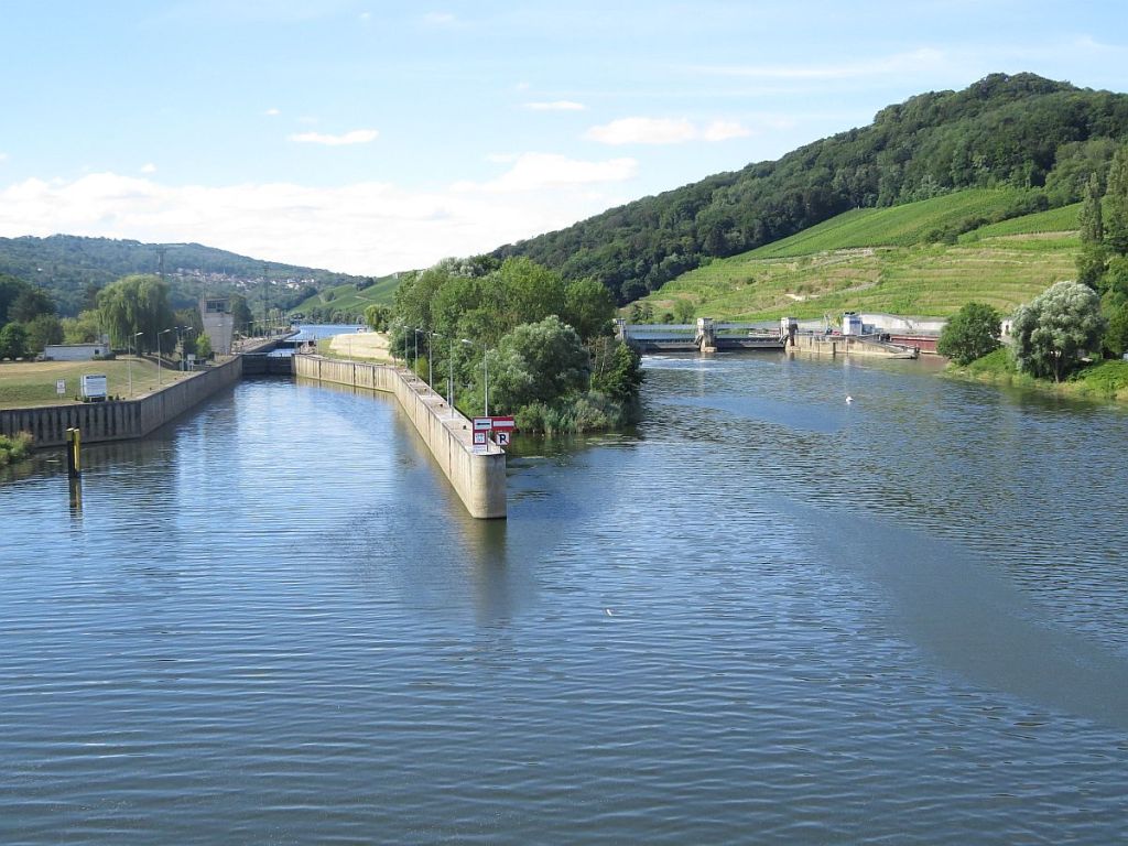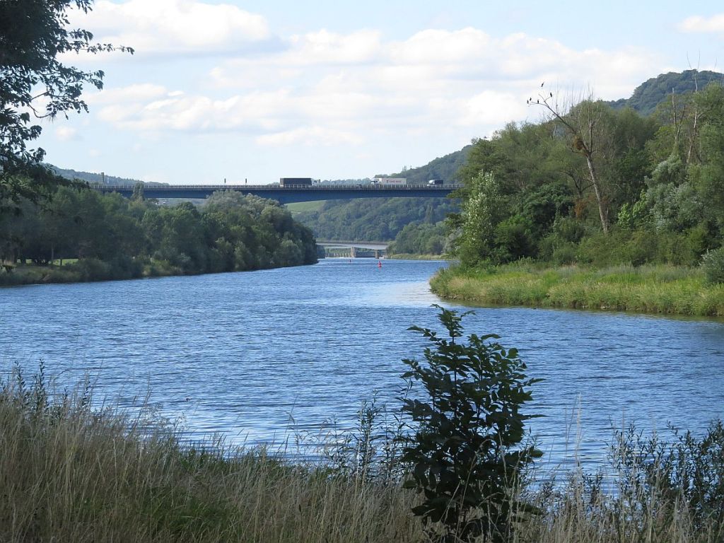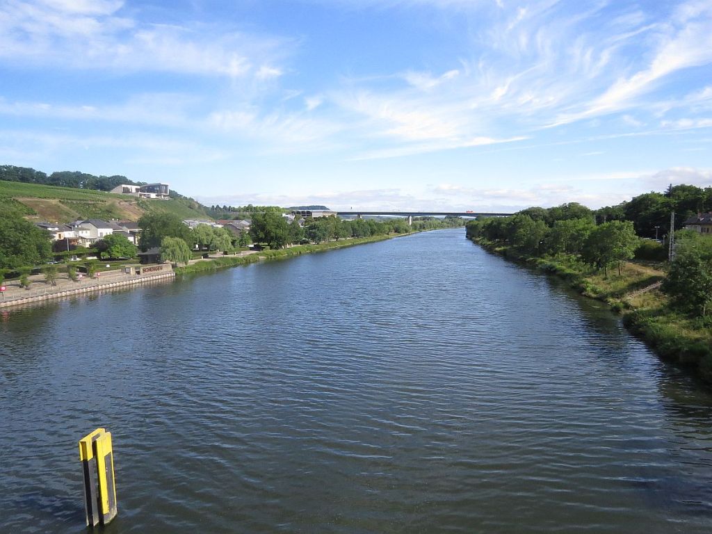 Vorbei an der netten Uferpromenade von Besch war auch schon die Staustufe Schengen, und die Autobahnbrücke der A 48 in Sichtweite.