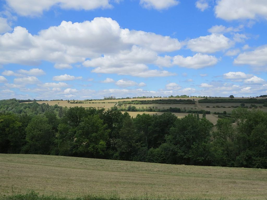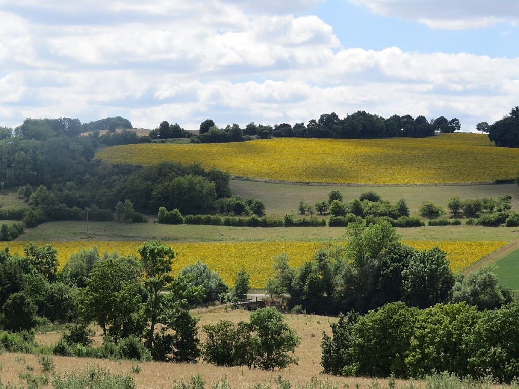 In der Ferne also Frankreich mit vielen Kornfeldern und zum Teil eingestreuten Sonnenblumenfeldern.
