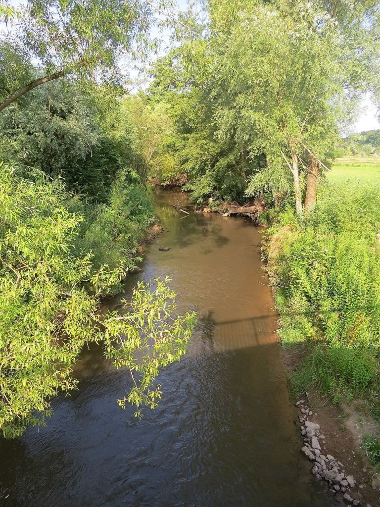 Nach einem kurzen Einkauf führte mich der Weg durch das Tal des Hornbaches. Sehr schön naturnah gestaltet, sodass es hier auch dem Storch gut geht.
