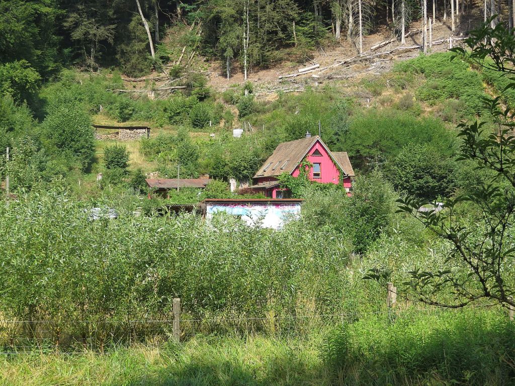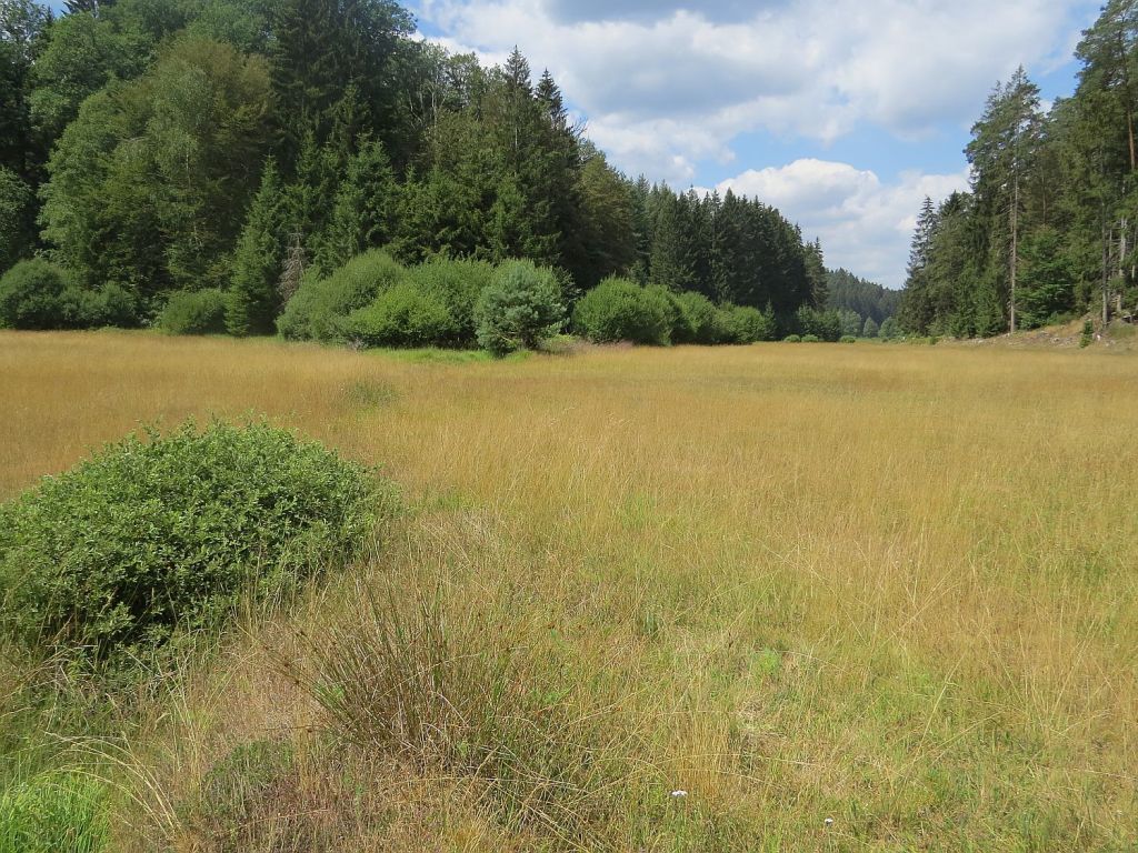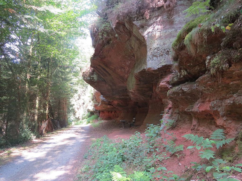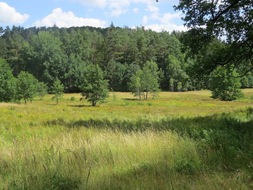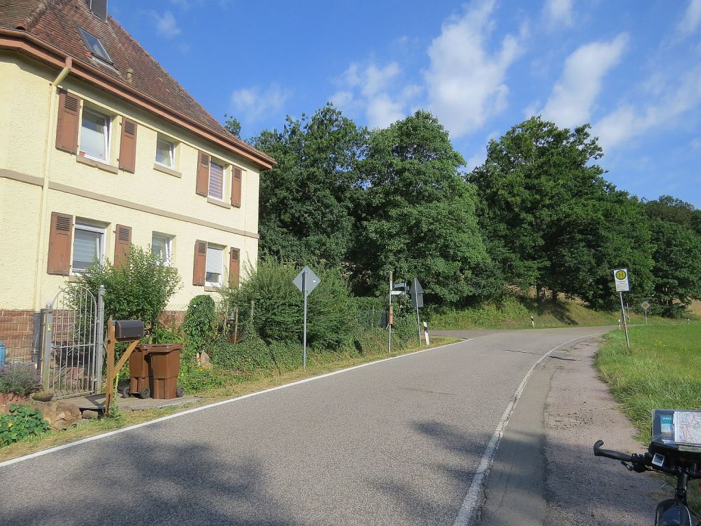 Ich nahm den Wanderweg und habe es nicht bereut. Es ging ganz gut zu fahren. Bis auf die letzten400 m im Wald. Hier musste ich einfach schieben, weil 60 m bergan auf sandigem Boden nicht zu fahren sind. Ich hatte einen schönen Pausenplatz und wunderschöne Wiesen im Tal auf dem Weg nach Ludwigswinkel.