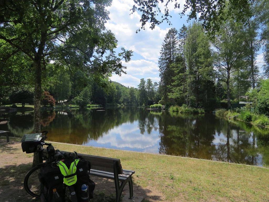 In einigen darf man auch baden. Dazu aber später mehr. In Ludwigswinkel gibt es einen Barfußpark. Diesen kannte ich schon von einem Urlaub mit Ulrike in der Pfalz. Da musste ich also hin, habe meine Füße gebadet und habe eine kleine Spende für die Nutzung bezahlt. Dadurch bin ich mit der Dame etwas ins Gespräch gekommen. Soviel Begegnungen hatte ich heute noch nicht.