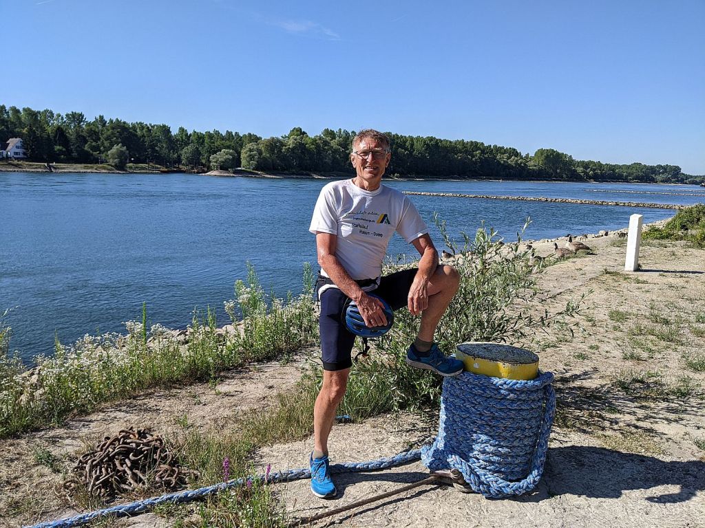 Leider gab es hier wenig später eine Umleitung. Der Damm zwischen Neuburgsweier und Illingen wird saniert. Dort traf ich einen sportlichen Radfahrer, der von der Mündung bis zur Quelle den Rhein abfährt. Schon nach kurzer Zeit trennten sich unsere Wege…Ich war auch nicht böse darum, weil ich auch Bilder machen wollte.