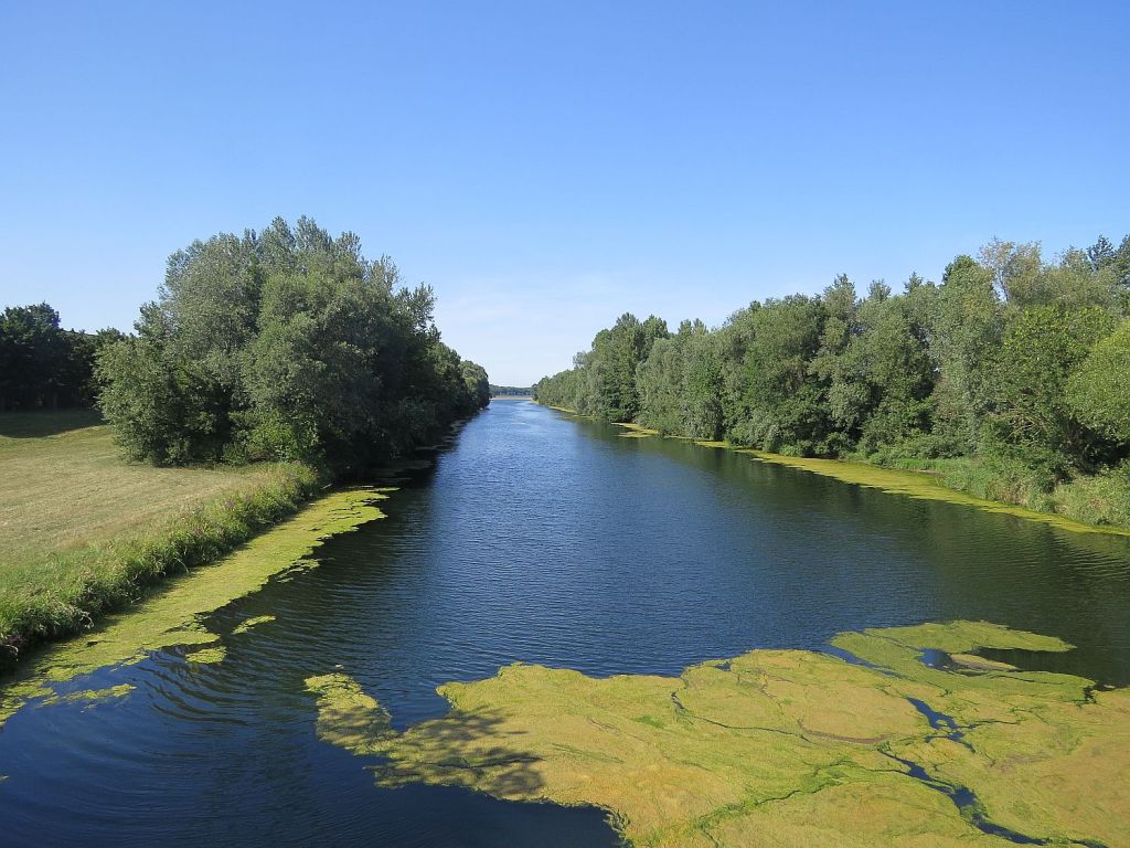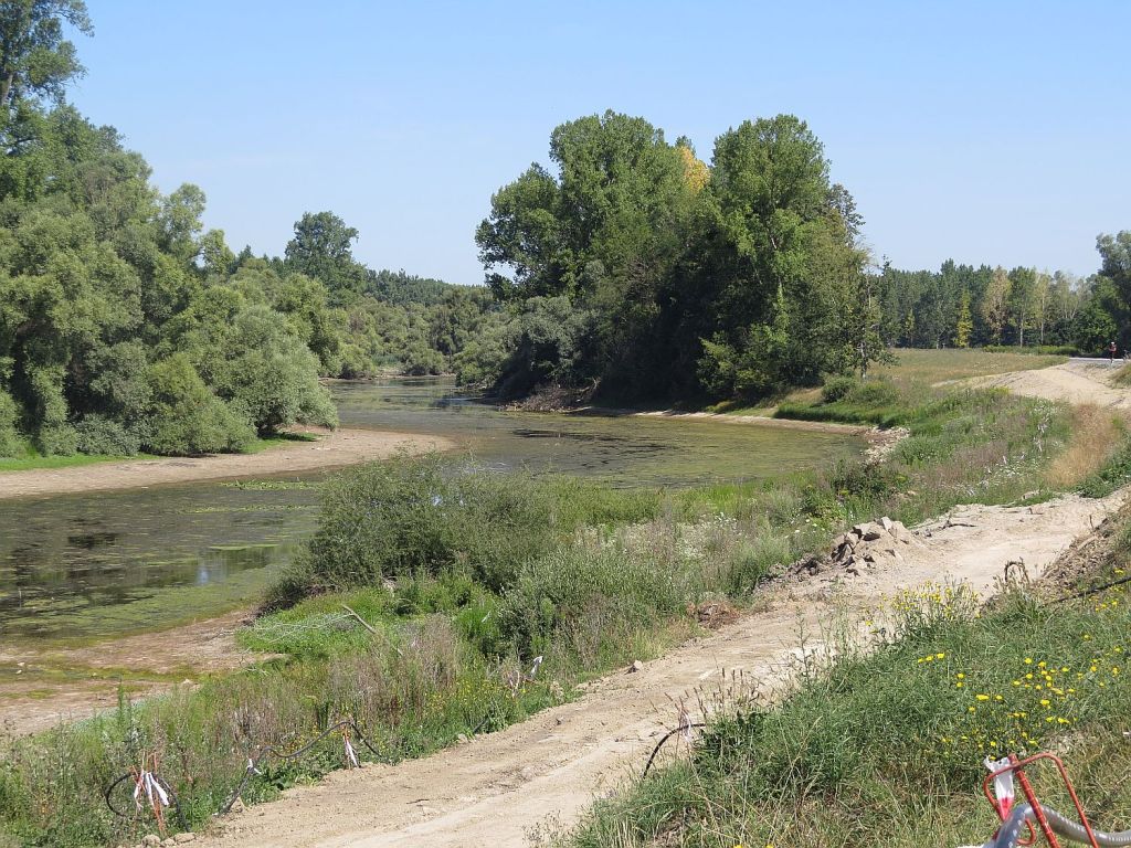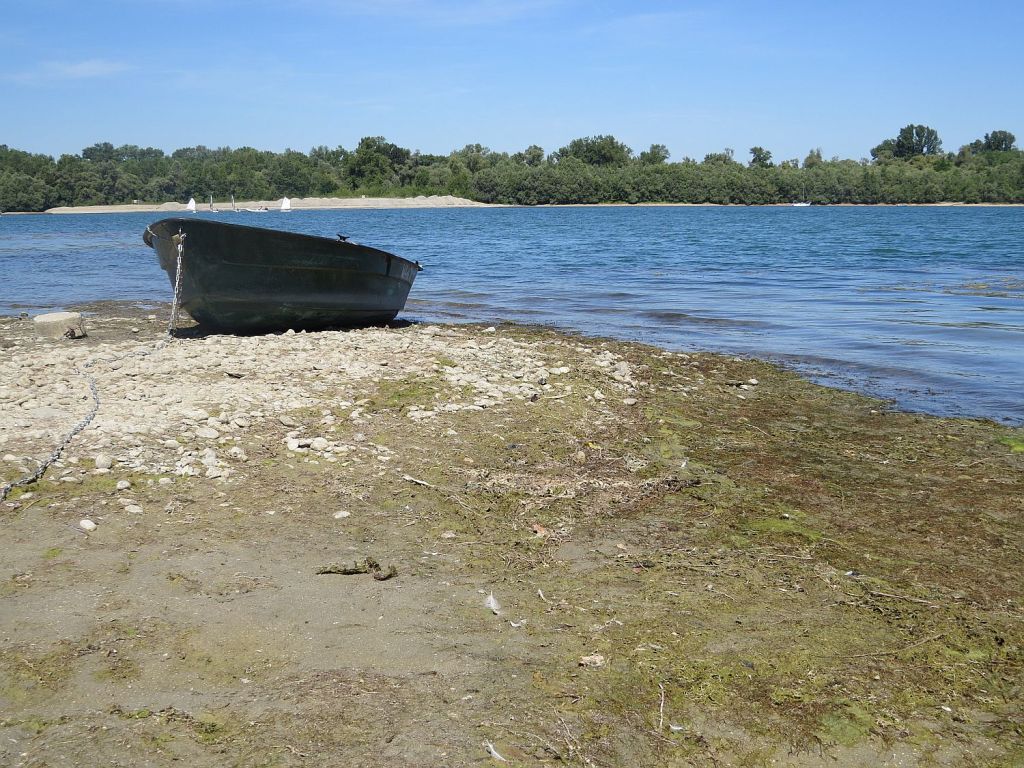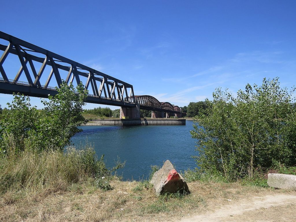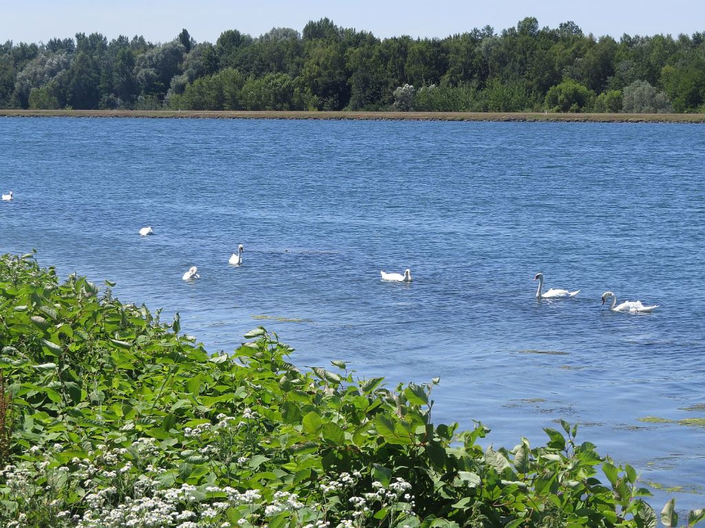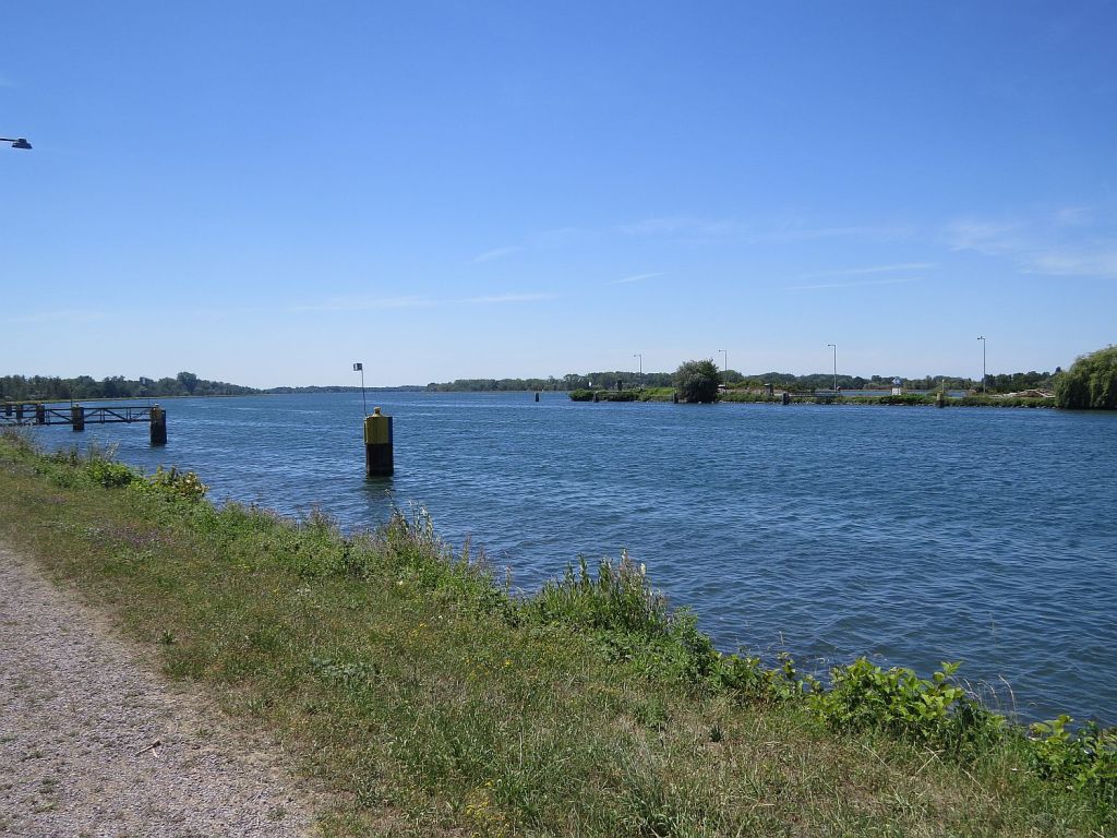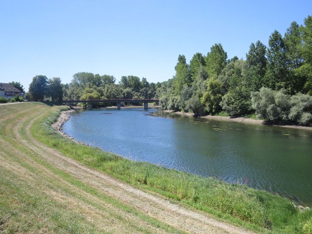 Trotz der großen Hitze – habe den Tag über reichlich getrunken – machte ich einen etwa 1,6 km langen Abstecher zur Mündung der Murg in den Rhein. Die Murg kommt aus der Nähe von Baiersbronn und ist insgesamt 95 km lang.