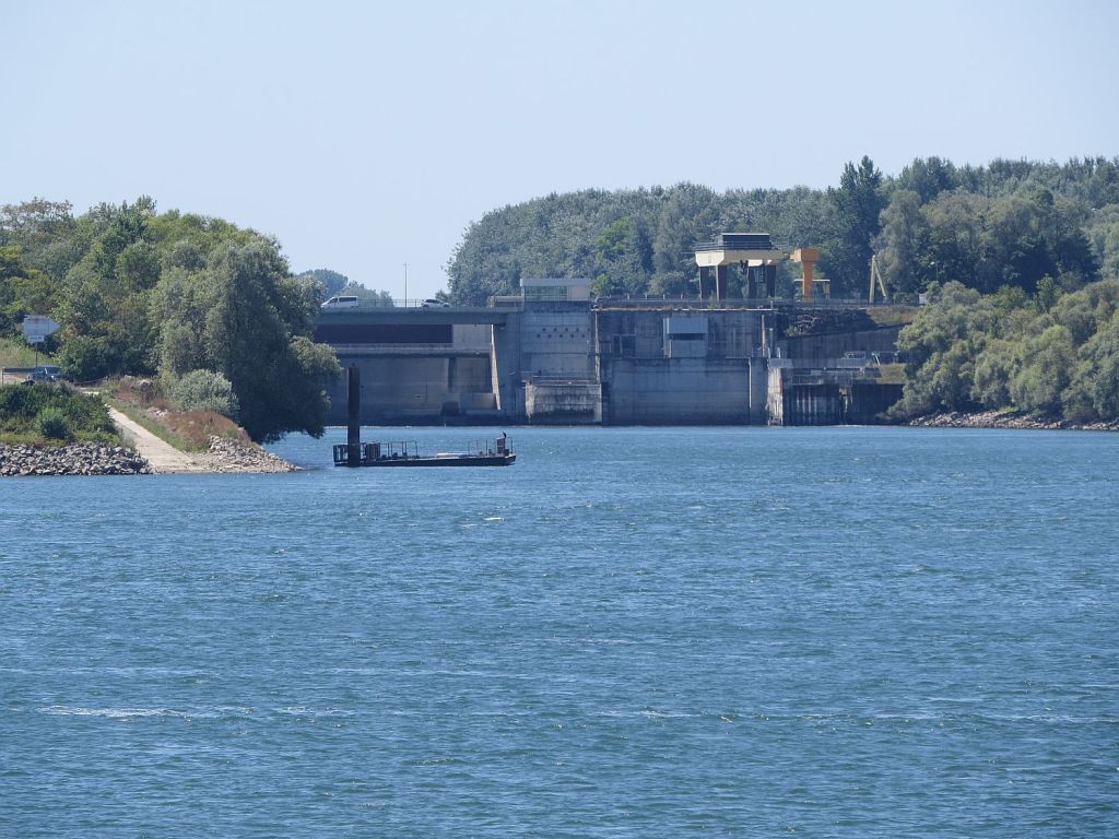 Vor der Staustufe hat der Rhein auch genügend Wasser. Ein Stück weiter stromaufwärts kommt auch schon die nächste Staustufe.