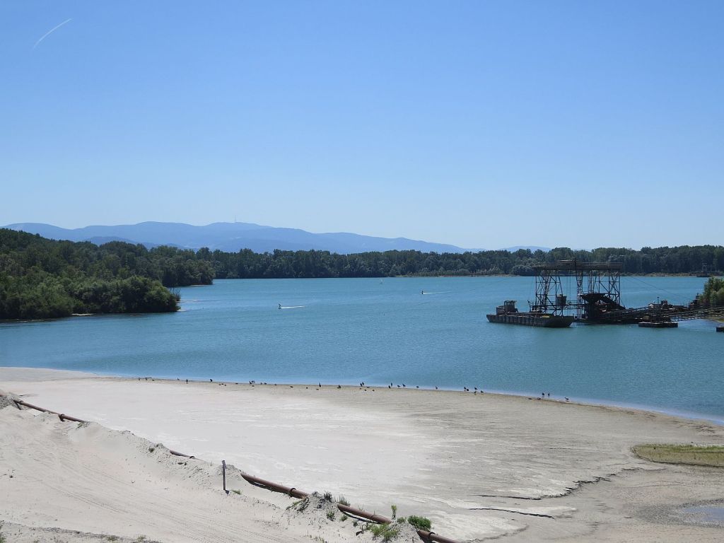 Auch heute noch wird hier Sand abgebaut und es entstehen neue Baggerseen. Auf folgenden Bildern wieder mit dem Schwarzwald im Hintergrund.