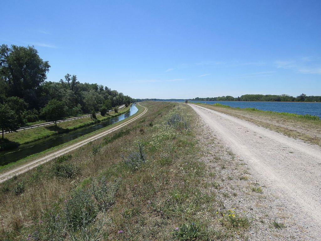 Immer links neben mir der Rheinseitengraben. Dieser wird zur Füllung der Polder bei Hochwasser genutzt und bekommt auch jetzt ständigen Wasserzufluss, damit die Polder nicht ganz austrocknen.