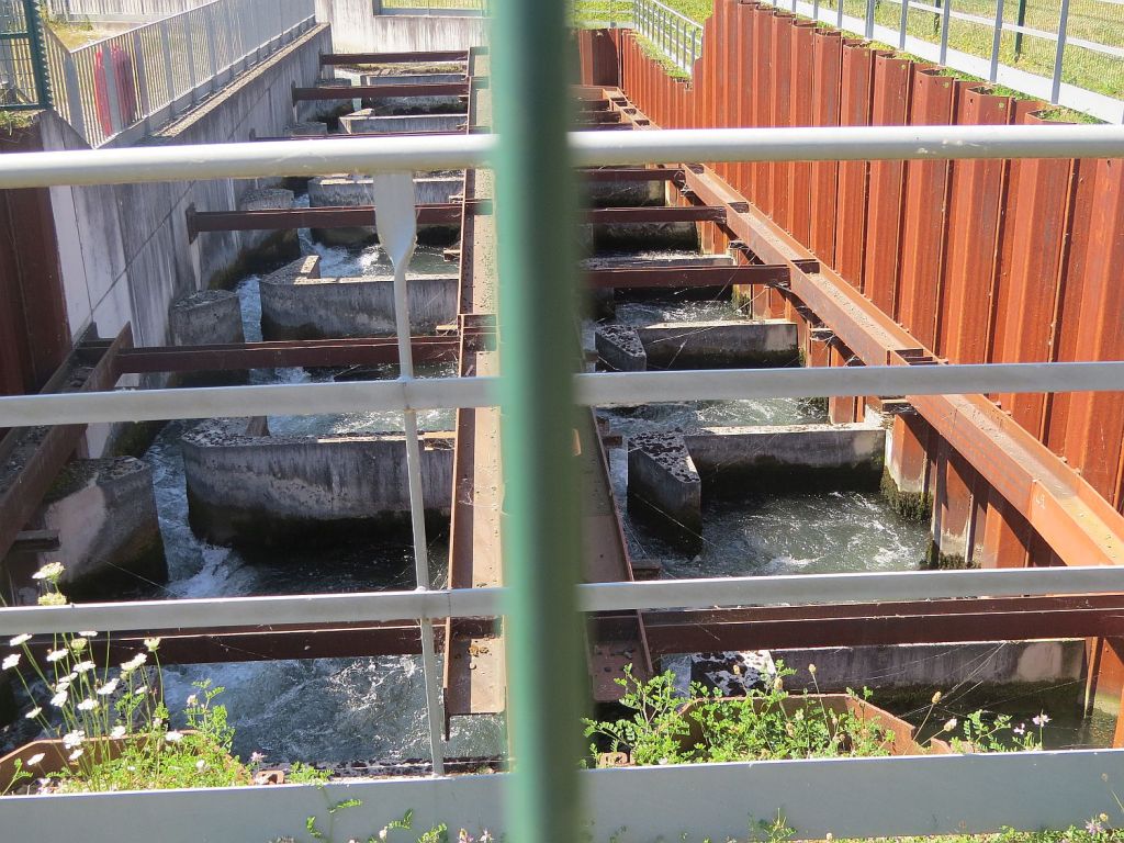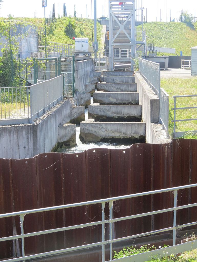 … erreichte ich die Staustufe bei Rheinau mit Fischaufstiegstreppe auf französischer Seite.