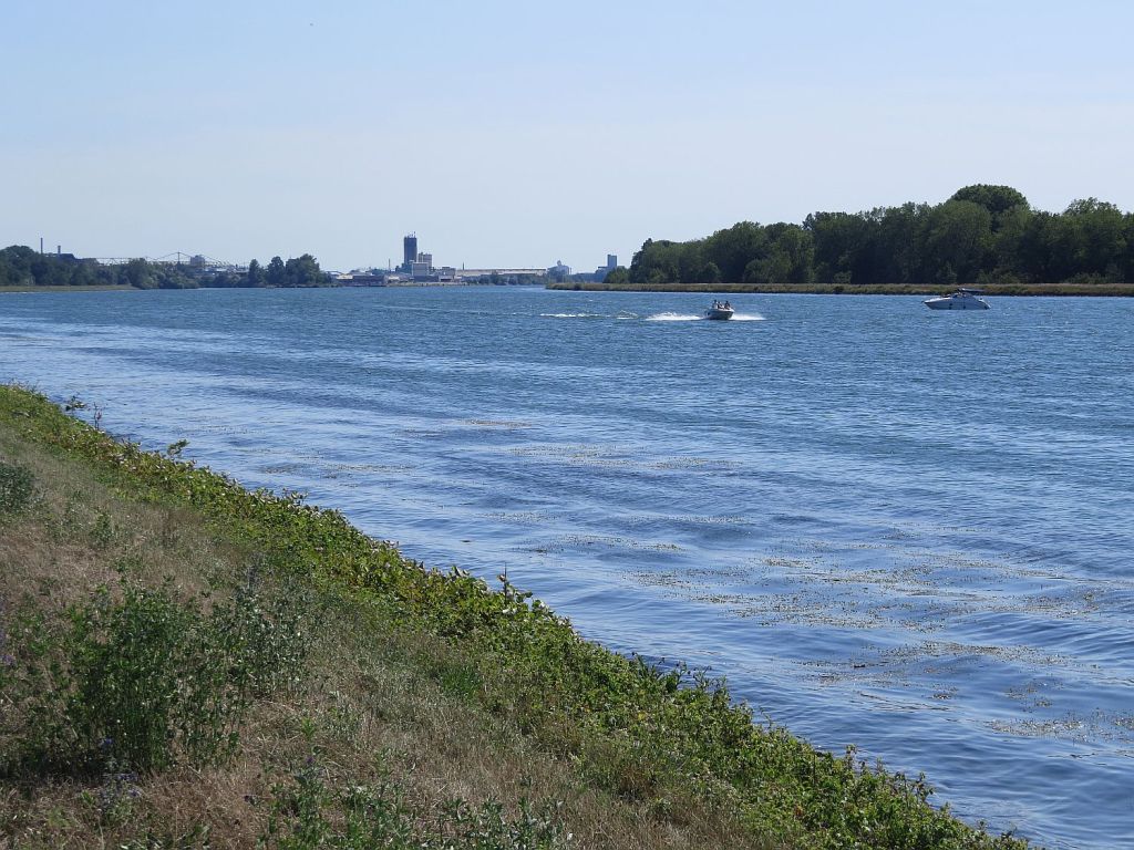 An Hafenanlagen und größeren Betrieben vorbei ,kommt man dann nach Kehl. Rechter Hand liegt die Kinzig, die bei Loosburg im Schwarzwald entspringt und nach 93 km hier in den Rhein mündet.