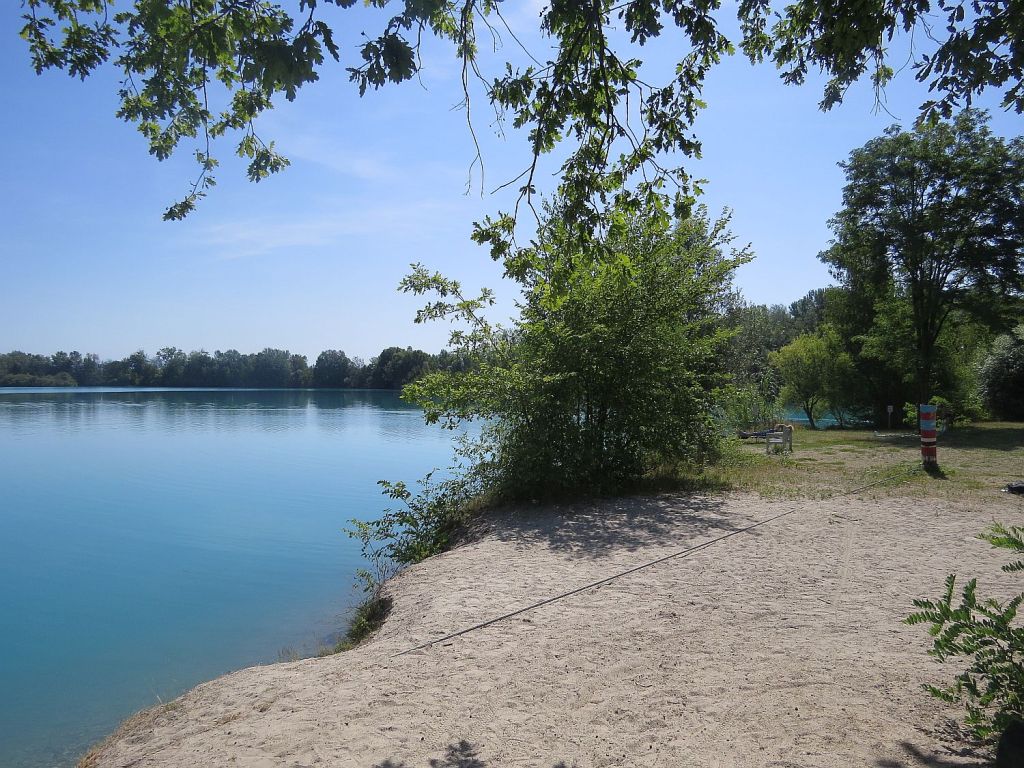 Immer wieder gibt es Baggerseen, die auch zum Baden einladen und wo dies nicht verboten ist. Diesen See habe ich noch nicht mitgenommen. Erst 10 km vor dem Ziel sollte es dann sein.
