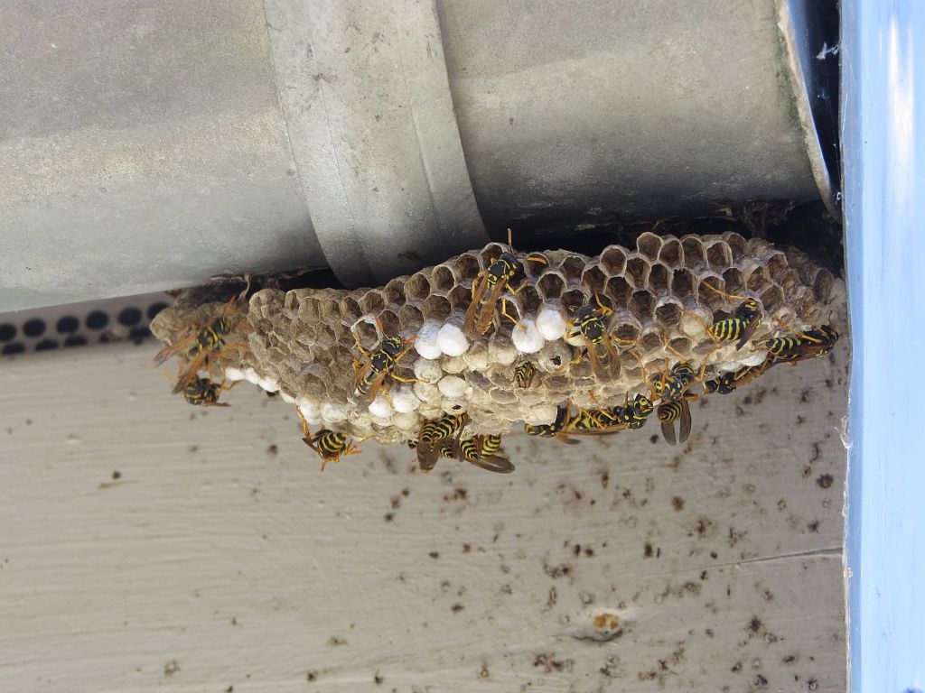 Eine der vielen Messstationen bietet auch Unterschlupf für Wildbienen. Ich meine nicht, dass es Wespen gewesen wären.