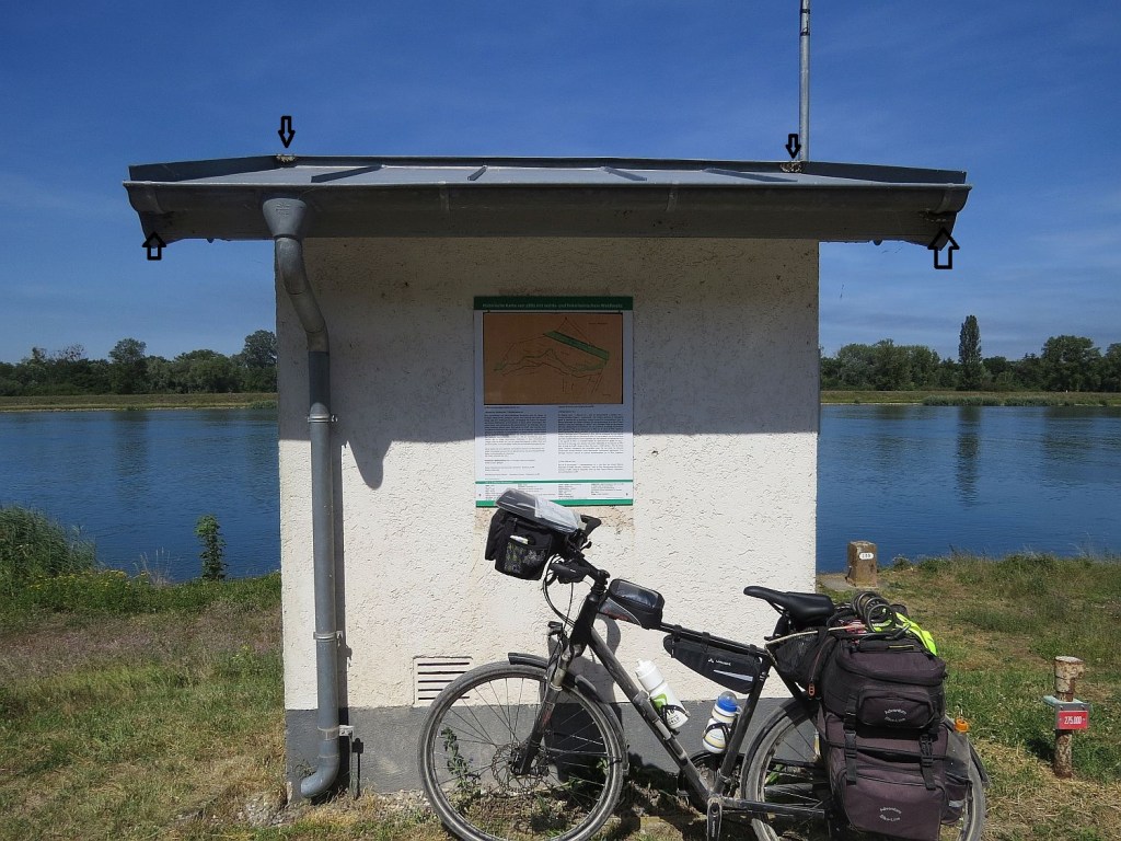 Die Hitzeschlacht – Thermometer am Rad zeigte zur Spitze 34,5 Grad im Schatten – sowie die mit 93km wohl längste Strecke der Tour habe ich geschafft. Jetzt bin ich in Breisach/Rhein angekommen und bleibe zwei Nächte. Morgen gibt es ein Treffen mit meiner ehemaligen Kollegin Anja. Sie hat für längere Zeit die Jugendherberge in Niebüll/SH geleitet.