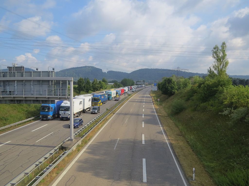 Vor Rheinfelden in Richtung Schweiz mussten die LKW auf der A 861 warten. Warum??