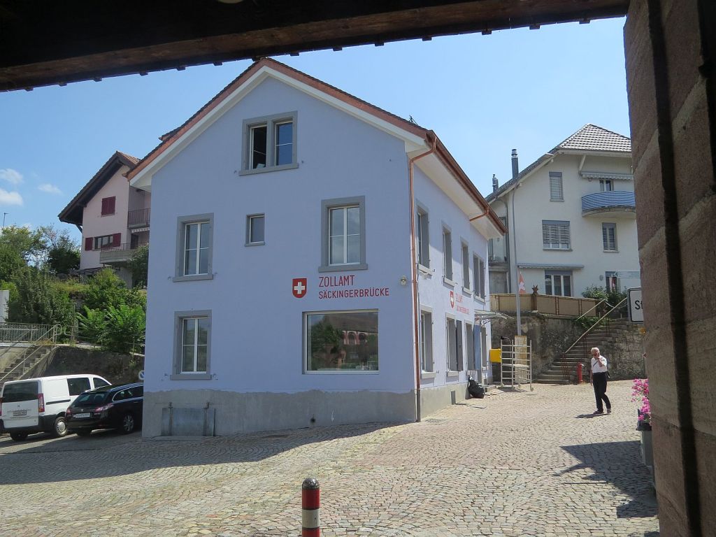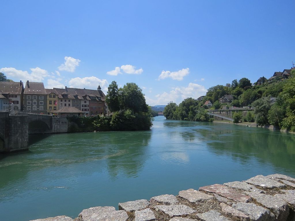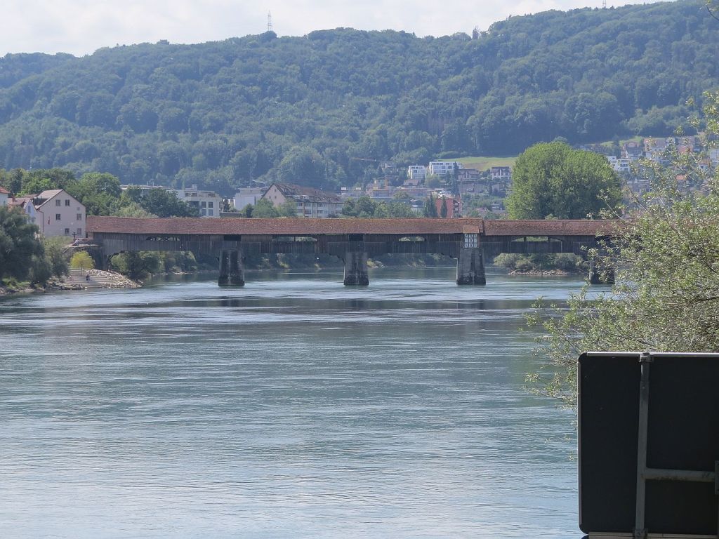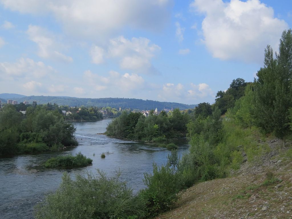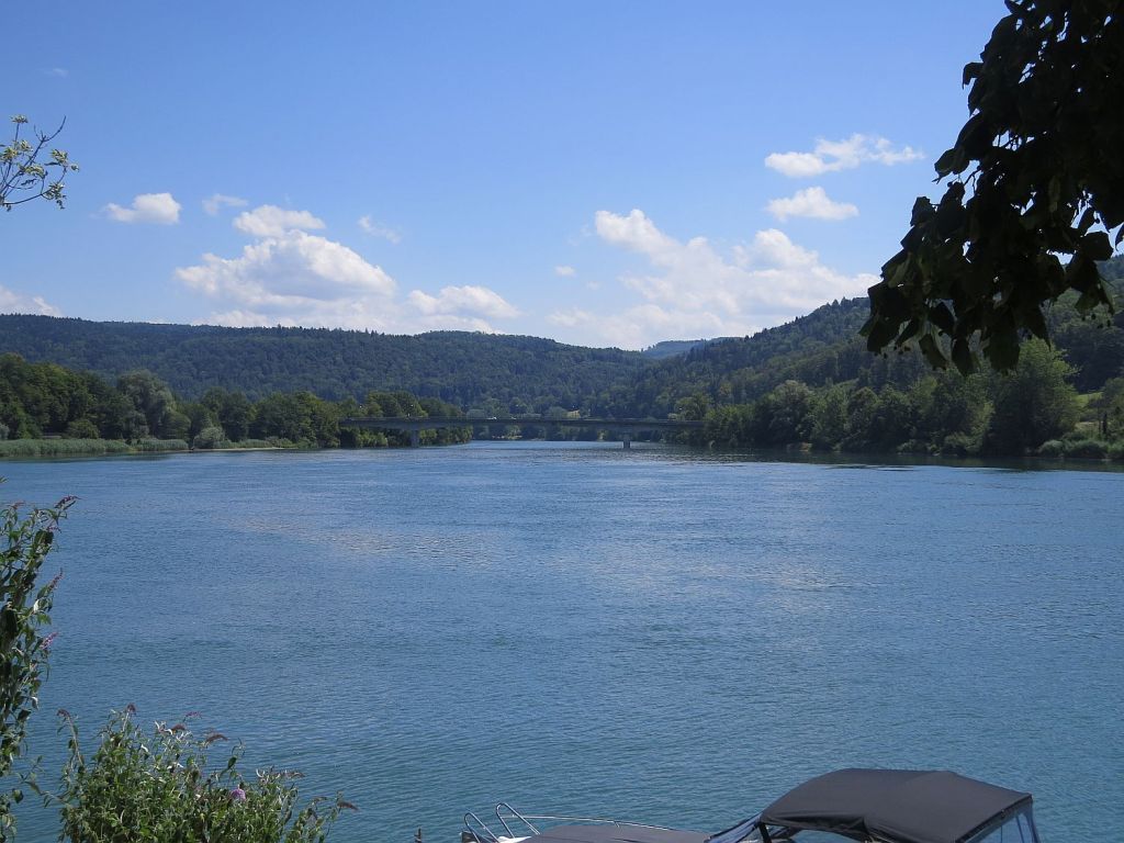 Hinter Bad Säckingen noch einmal einen Blick zur Brücke. Der dritte Pfeiler ist die Grenze.