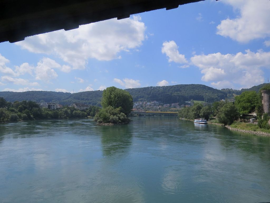 Daher ging es zuerst zur Brücke, um von hier schöner Blicke auf Rhein und Ort haben zu können.