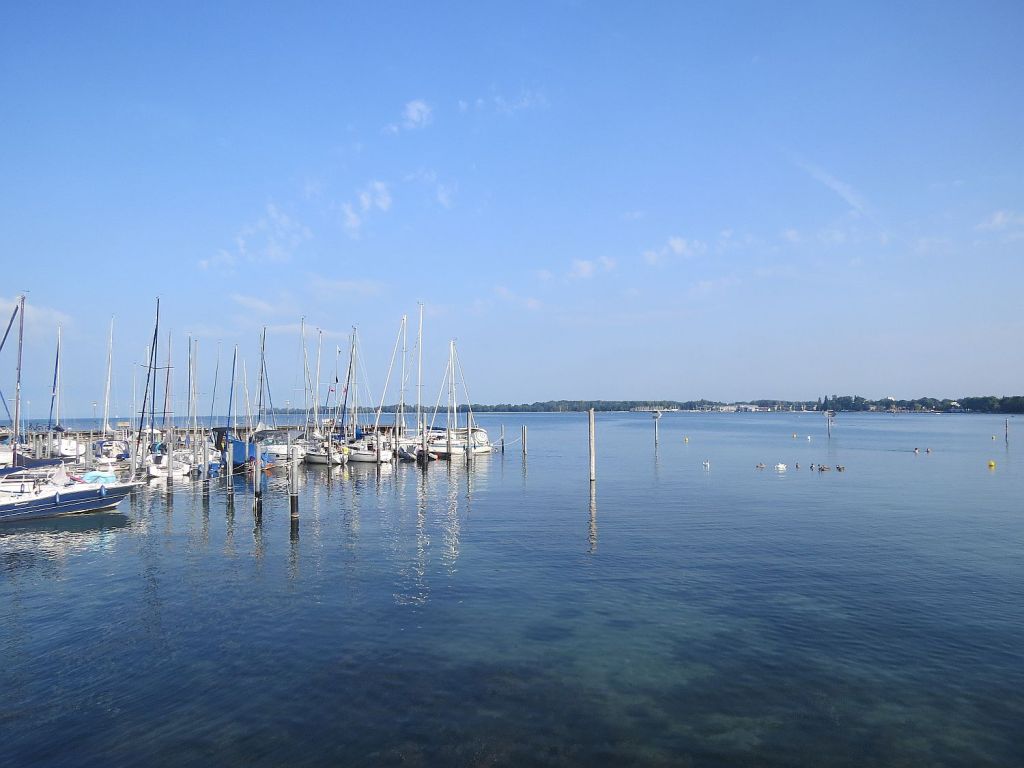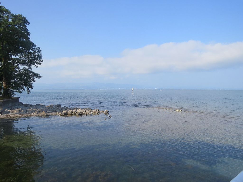 Heute Morgen zeigte sich der Bodensee schon schöner – nicht ganz klar, aber mit Sonnenschein.