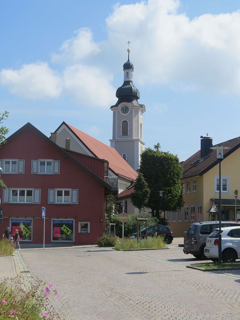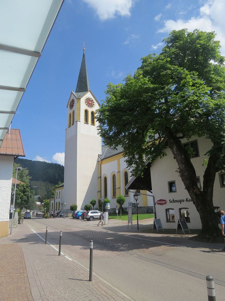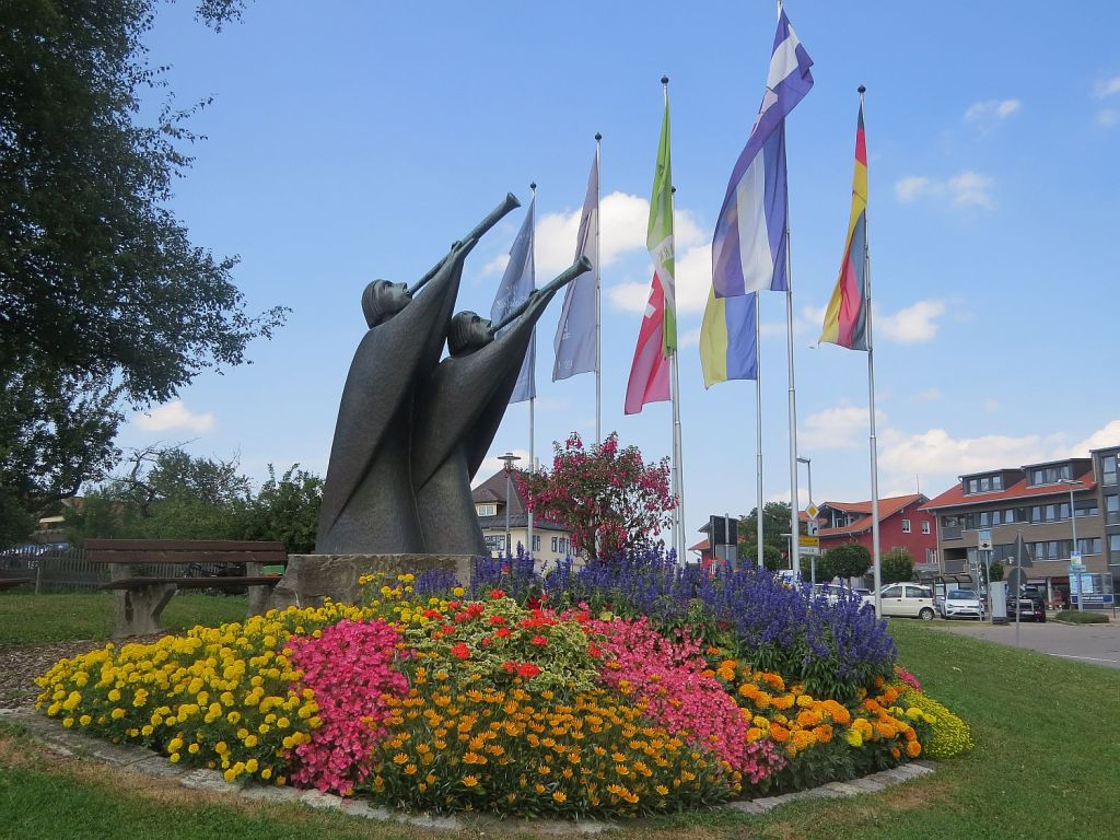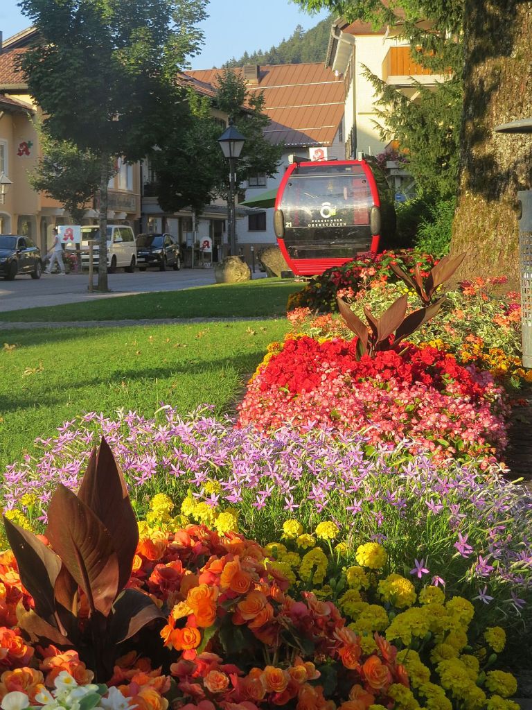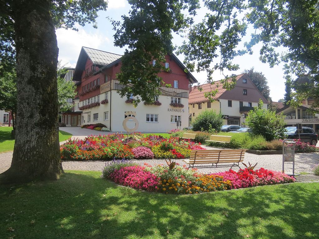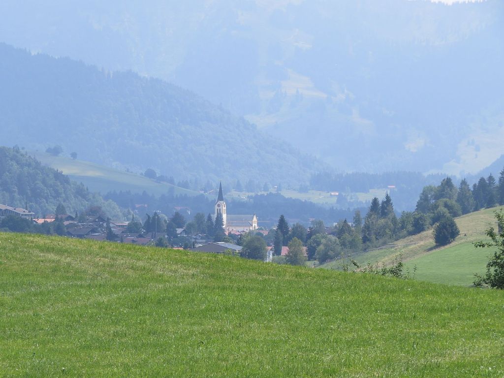 Am Ortsende gibt es einen schönen Platz mit Trompeter und den wohl besten Blick auf den 1835 m hohen Hochgrat.