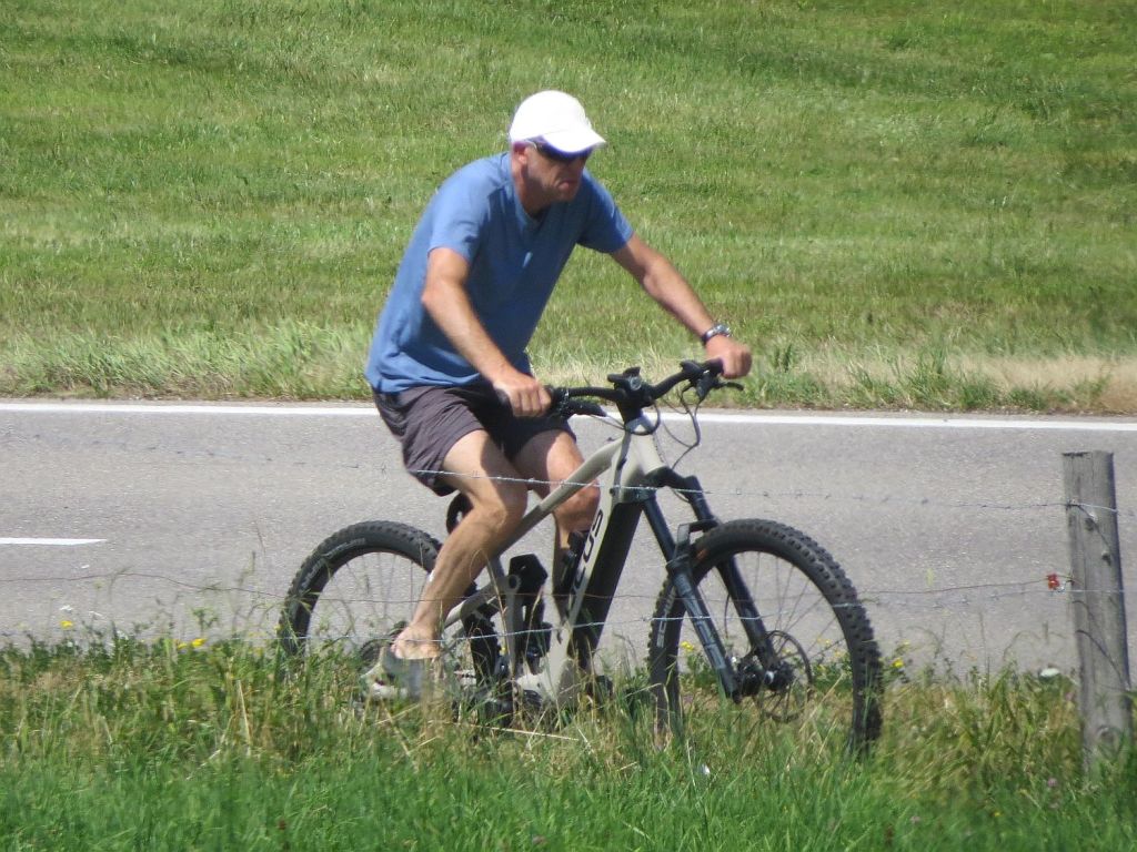 Zum Glück fuhren nicht allzu viele Autos auf der Strecke. Aber immer wieder Radfahrer. Alle mit E-Bike. Nur einer in der Zeit ohne Unterstützung und ohne Gepäck.
