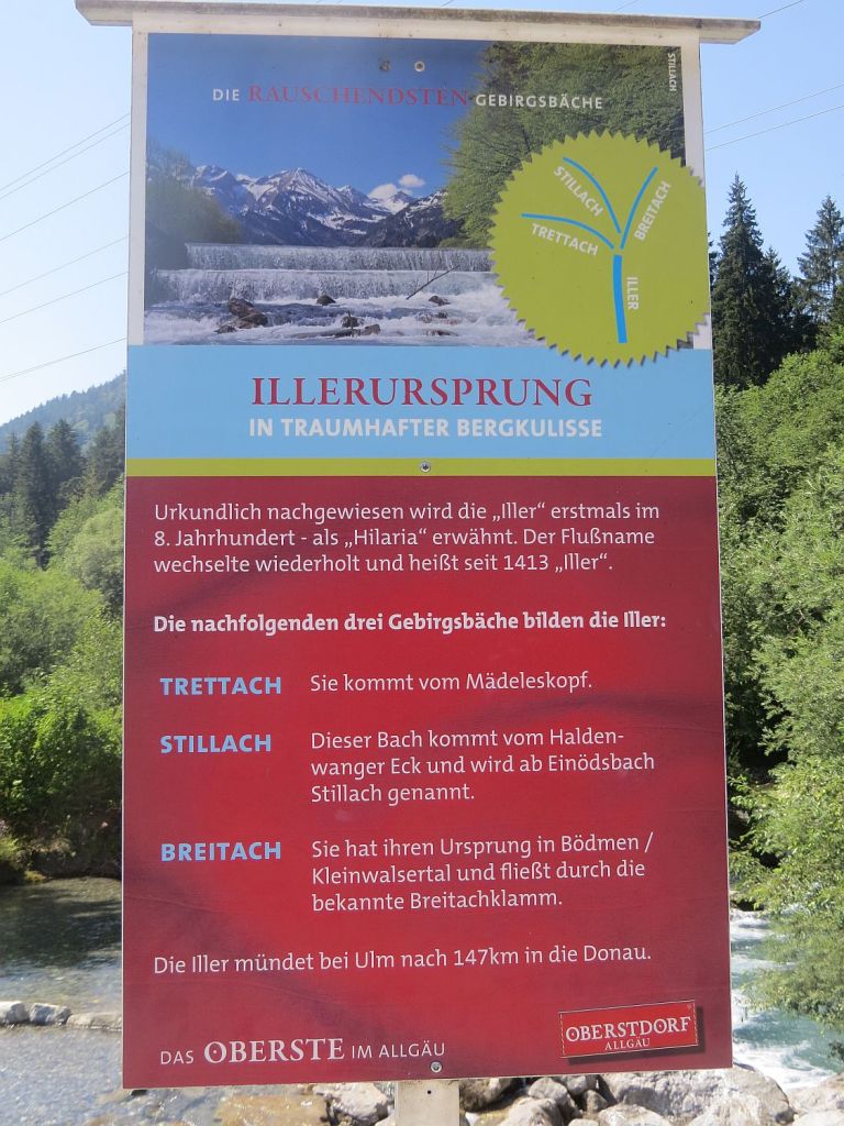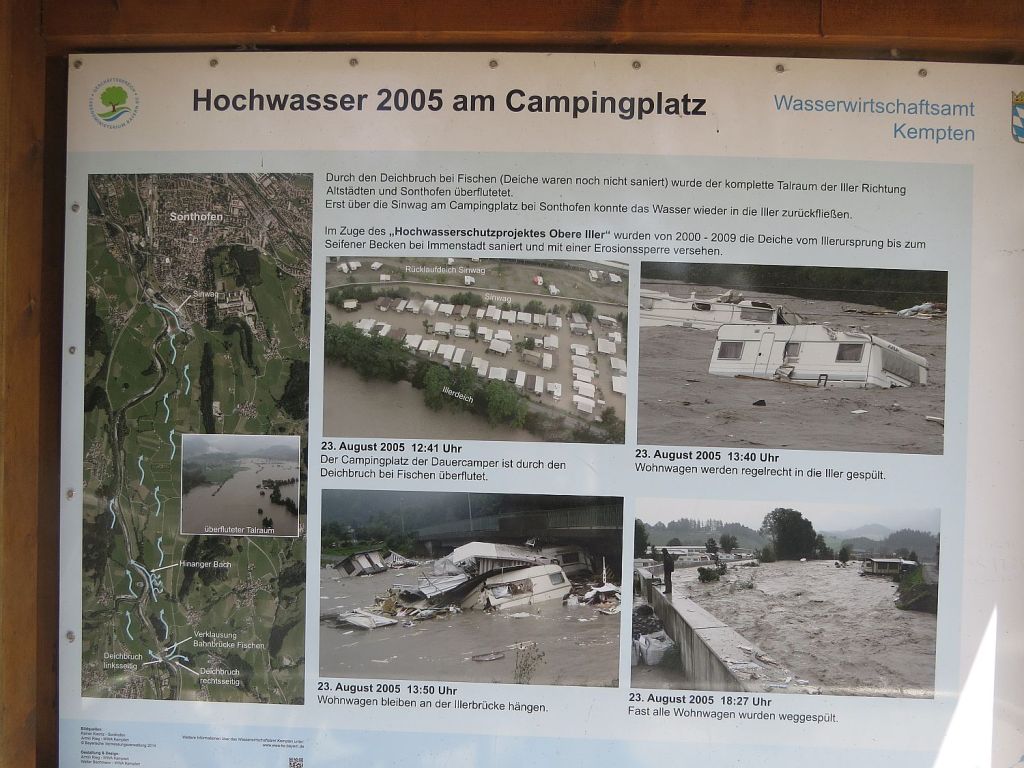 Auf dem Weg nach Oberstdorf gibt es noch mehr solcher Infotafel. Der Auslöser der Flut war natürlich ein Jahrhundertregen. Allerdings dadurch verstärkt, dass Bäume etc. an einer Eisenbahnbrücke hängengeblieben sind und sich dadurch ein Rückstau gebildet hat und die Deiche diesem Druck nicht standhalten konnten. Die Brücke wurde völlig zerstört und ohne Zwischenpfeiler neu aufgebaut.