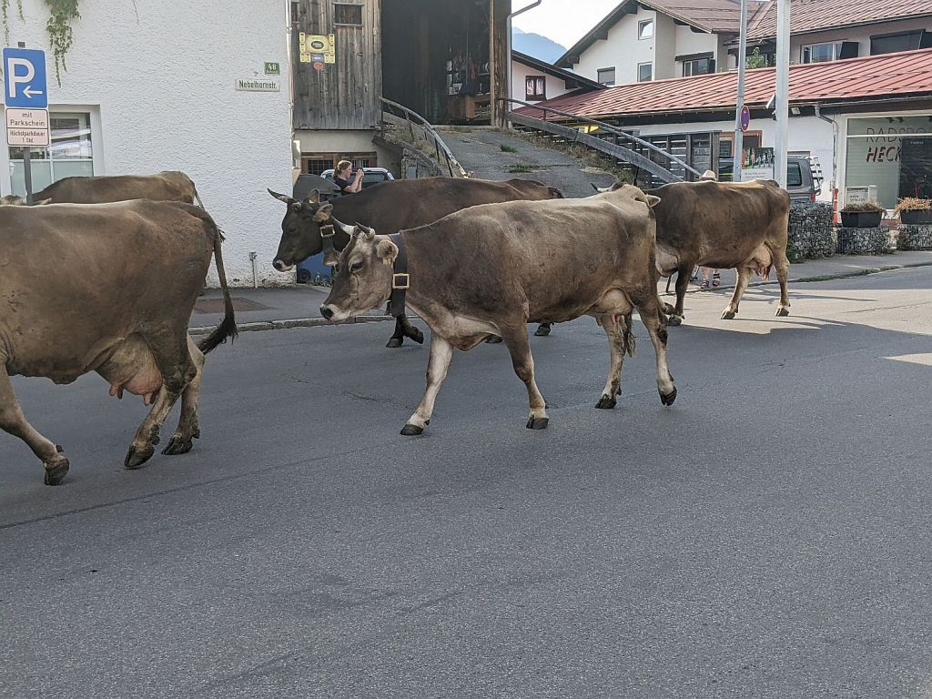 Oberstaufen – Immenstadt – Sonthofen – Fischen – Oberstdorf so die größeren Orte heute auf der Strecke. Unterwegs, besonders auf dem Weg nach Immenstadt, durch viele kleine typische Allgäuer Dörfchen gekommen. Auch wieder ganz viele Kühe und Ziegen mit Glocken gesehen und vor allen Dingen gehört.