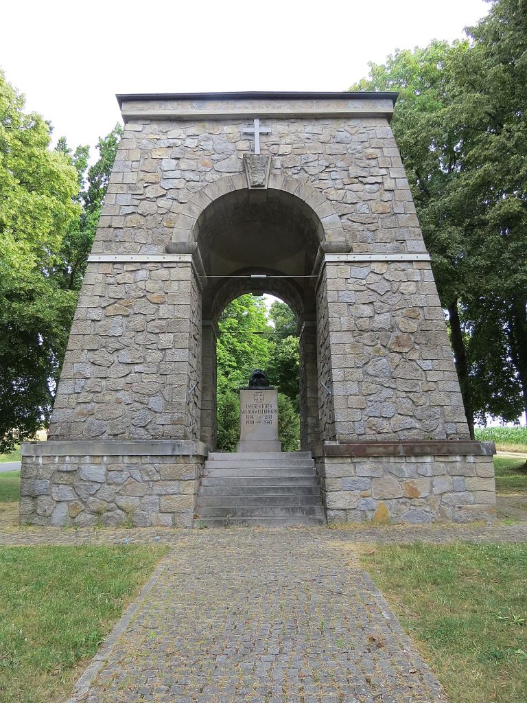 Auf dem Weg zur Route wurde ich von einem Radfahrer mit Gepäck, Bioantrieb, überholt. Beim Denkmal für die getöteten Soldaten der beiden Weltkriege sind wir ins Gespräch gekommen.