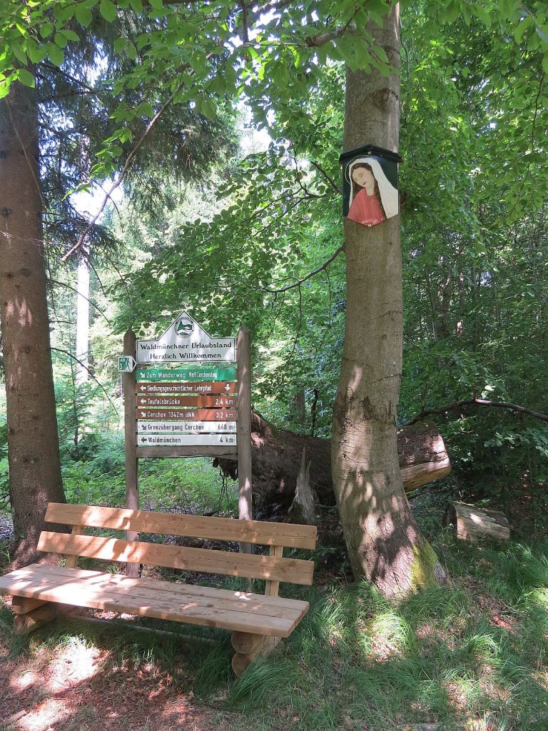 Unser Gespräch wurde dadurch unterbrochen, dass mehrere Autos der Bayrischen Forstverwaltung auftauchen und nicht weiterfahren konnten. Mein Fahrrad stand im Weg. Jedenfalls sind jede Menge Auszubildende ausgestiegen. Sie sollten lernen, wie eine Kohlemeiler aufgebaut wird. Jetzt war mir dort zu viel Trubel und ich fuhr meinem Ziel Waldmünchen entgegen.