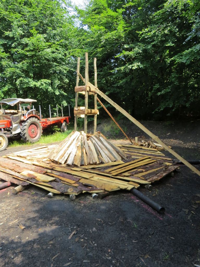 Die Herren dort bauten einen Kohlemeiler auf und waren erst bei der Grundstruktur angekommen. Dies hatte ich auch noch nicht gesehen.