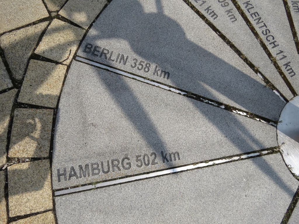 Neben dem Marktplatz gibt es Markierungen wie weit es zu den verschiedenen Orten ist. Die habe ich mir für meine beiden Bilder herausgenommen.