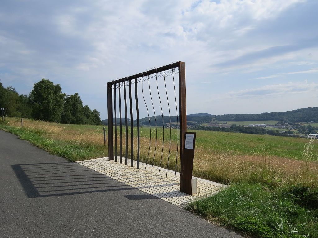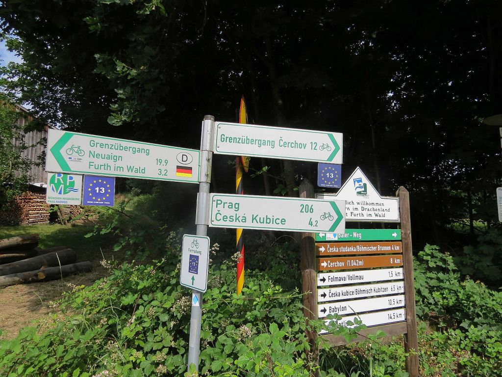 Prag ist auch schon ausgeschildert und kurz hinter der Grenze kam eine Grenzskulptur.
