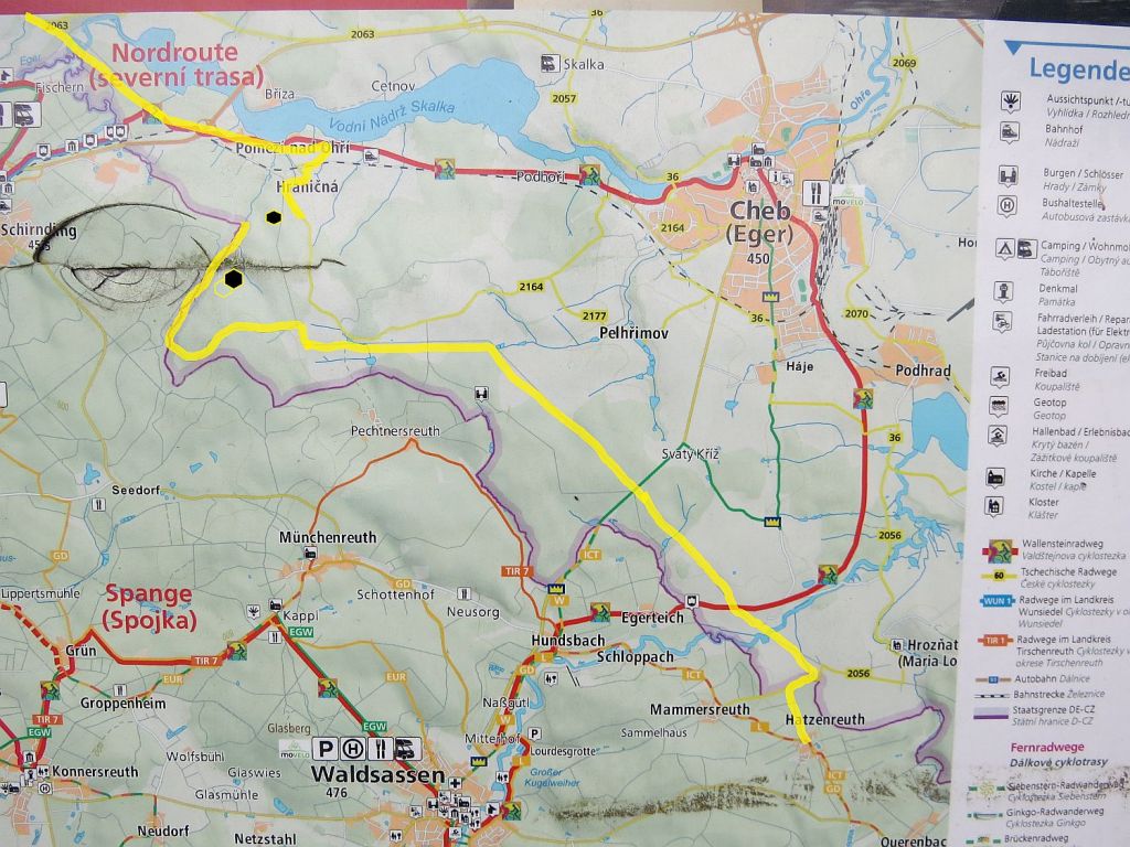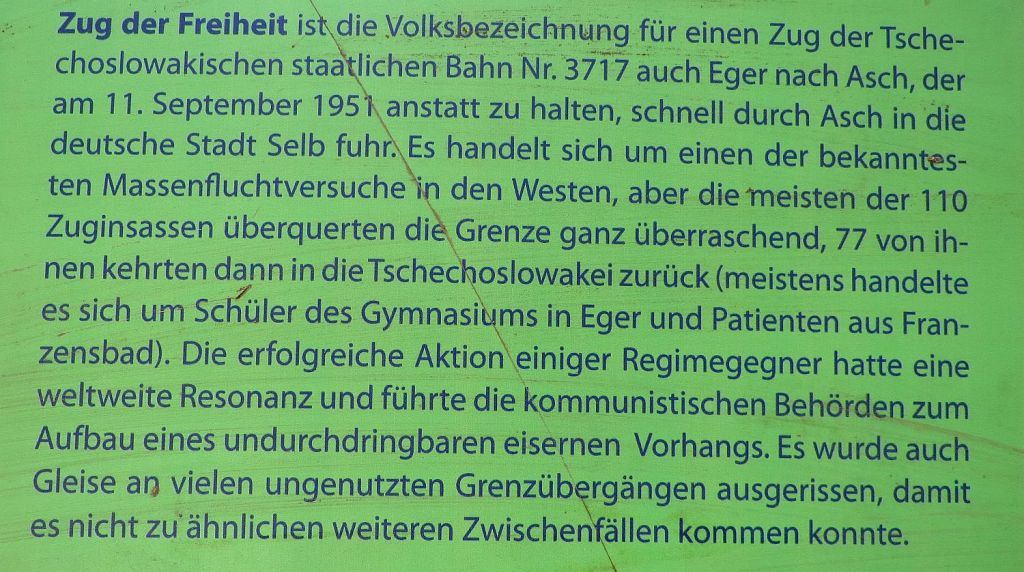An einer Stelle, rund 3 km vor Asch, konnte ich mich dazu überreden, doch jetzt den direkten Weg nach Selb zu nehmen. Ich war es jetzt leid auf dem Kolonnenweg weiterzufahren. An der Infotafel dieses gelesen: