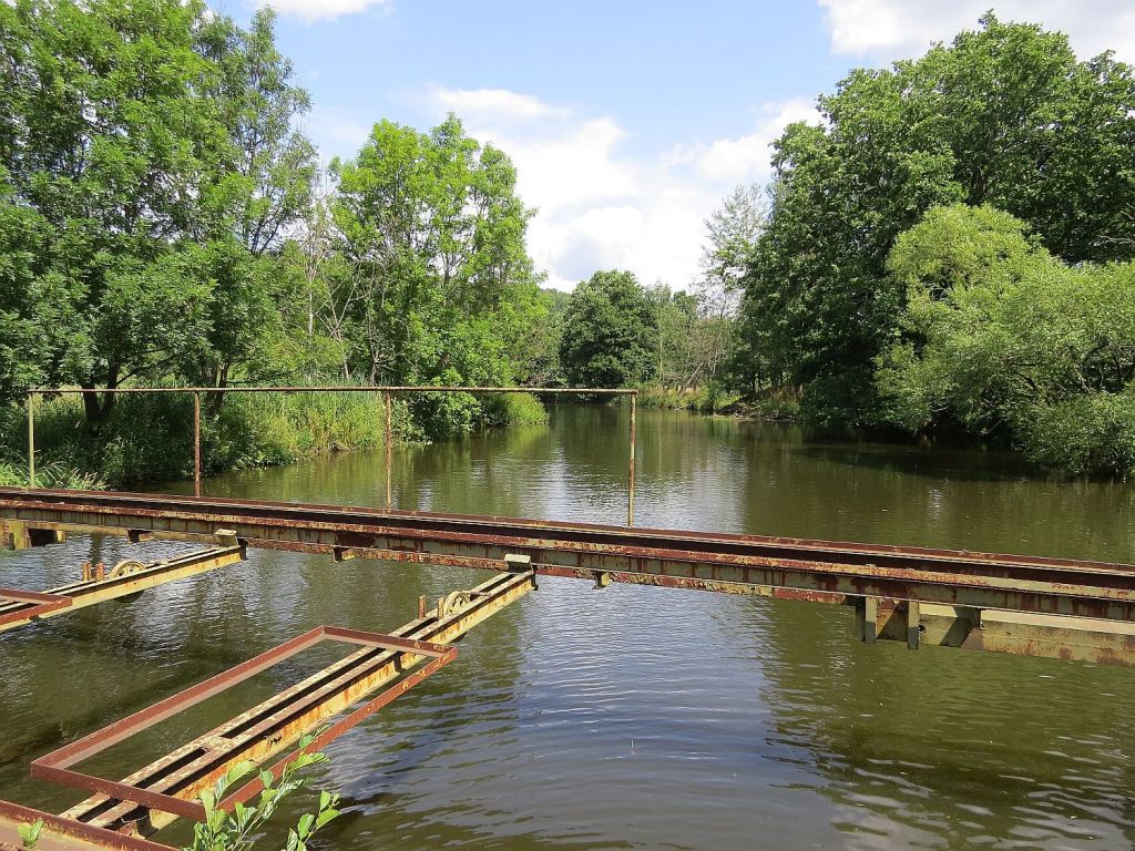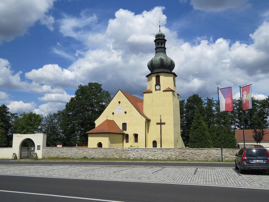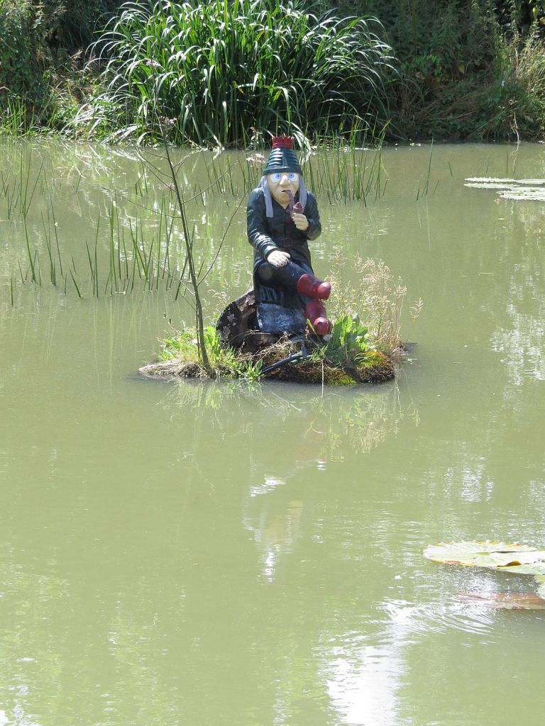 … gesellte sich dazu. Und langsam wurde es besser – der Weg breiter und dann auch noch ein Mensch im Wald, der auch – welch‘ ein Glück – Deutsch sprach. Jedenfalls war ich doch tatsächlich auf dem richtigen Weg nach Dol.Hranicna. Da wo die Sechsecke auf der Karte waren, muss ich gewesen sein. Im Ort eine nette Figur auf dem Feuerlöschteich.