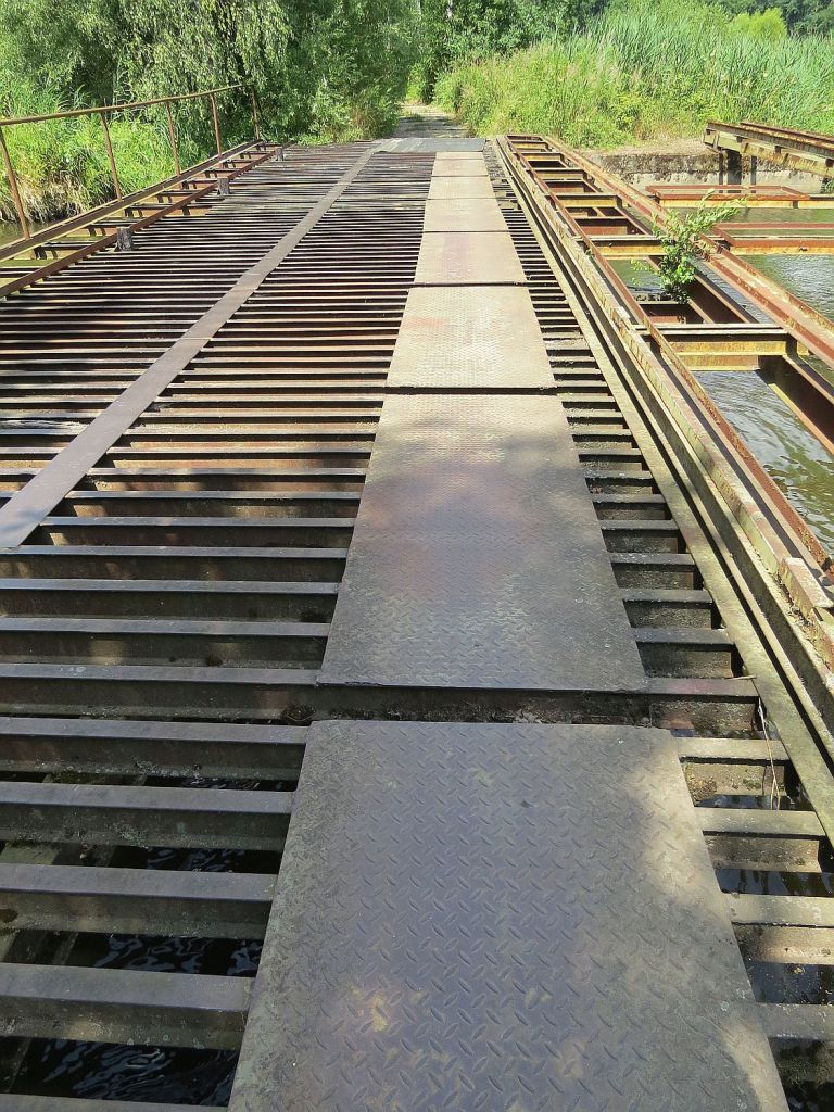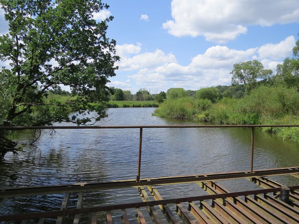 Über diese Brücke muss man erst gehen. Sie überquert den Bach Mohelnský.