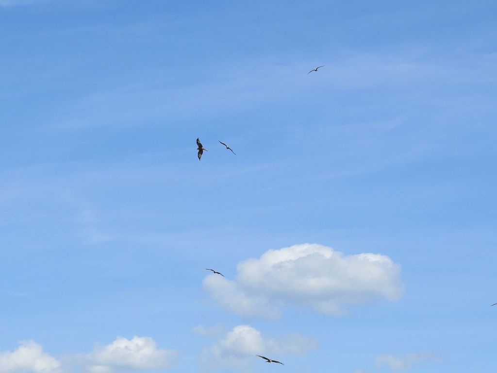 Hier oben wurden gerade Heuballen zusammengerollt. Darüber waren mindestens 13 Greifvögel zu