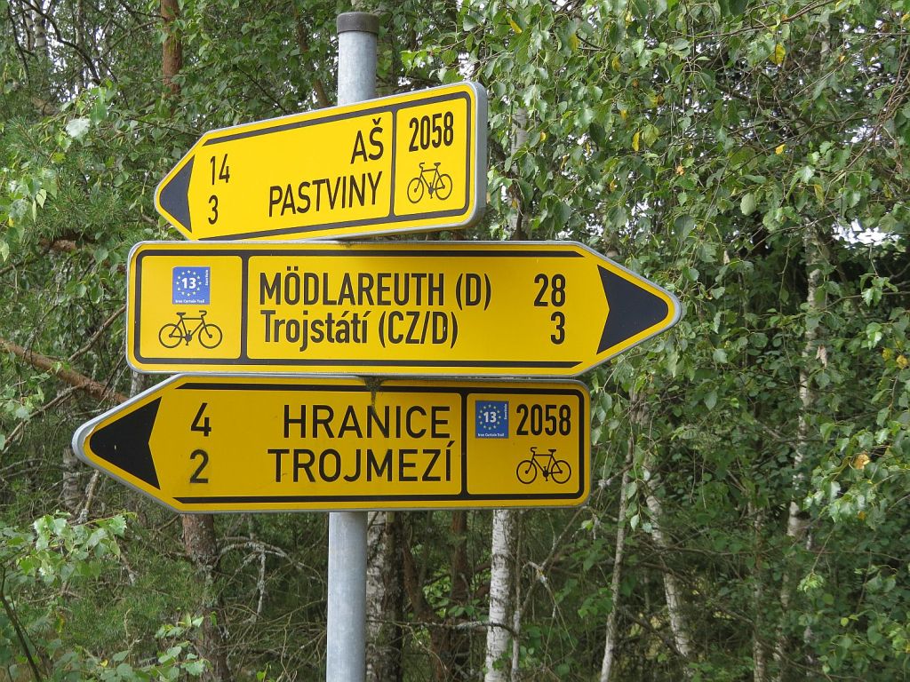 Hier konnte ich mich entscheiden. Deutsche Seite oder die Seite der Tschechien Republik. Trotz der Erfahrung von gestern fielen die Würfel gegen die deutsche Seite, auch weil mir ein Anwohner glaubhaft versichert der Weg nach Asch sei gut zu fahren. Er hatte recht. Kurz vor Asch kam ich dann wieder auf den Radweg Eiserner Vorhang Nr. 13. Gut ist etwas anderes, aber nur wenige Stellen sind sehr schlecht. Aber viel interessanter und auch näher an der Grenze.