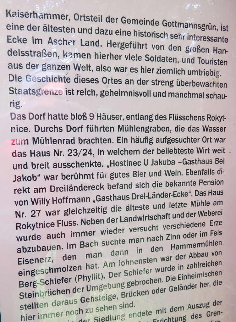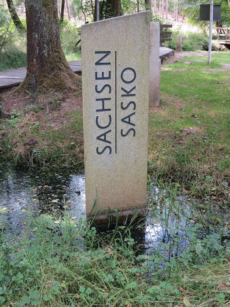 Als wir dort saßen, kam noch ein jüngerer Mann des Weges und setzte sich etwas abseits. Er grüßte nett beim Kommen und auch bei Weggehen. Mehr ergab sich nicht, weil er leider nicht zu uns gekommen war. Er wanderte in die Richtung in die ich auch fahren musste. Und es dauerte nicht lange, da hatte ich Ihn eingeholt und habe ihn angesprochen. Dann war er auch sehr redselig. Er will heute auch bis Bad Elster, um den letzten Zipfel der Grenzwanderung erledigt zuhaben. Er ist im