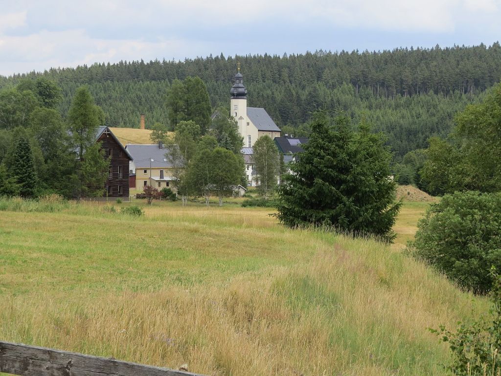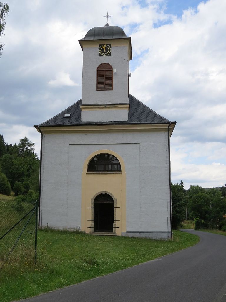 Es ging nach Krystofovy Hamry (Christophhammer) an der Kirche vorbei, ..