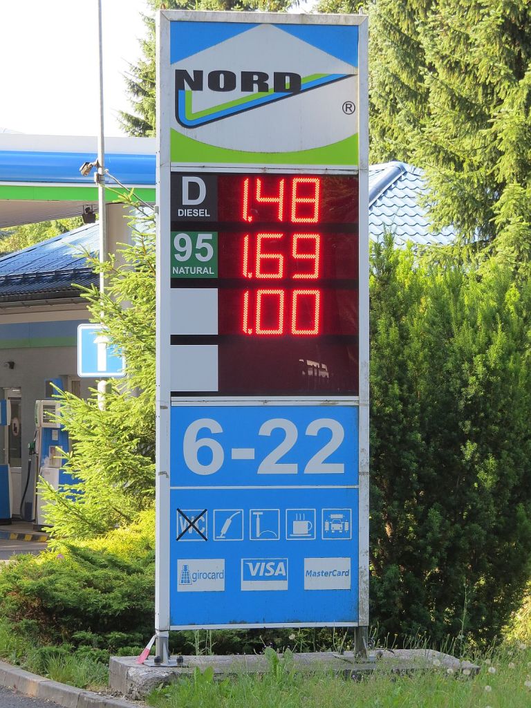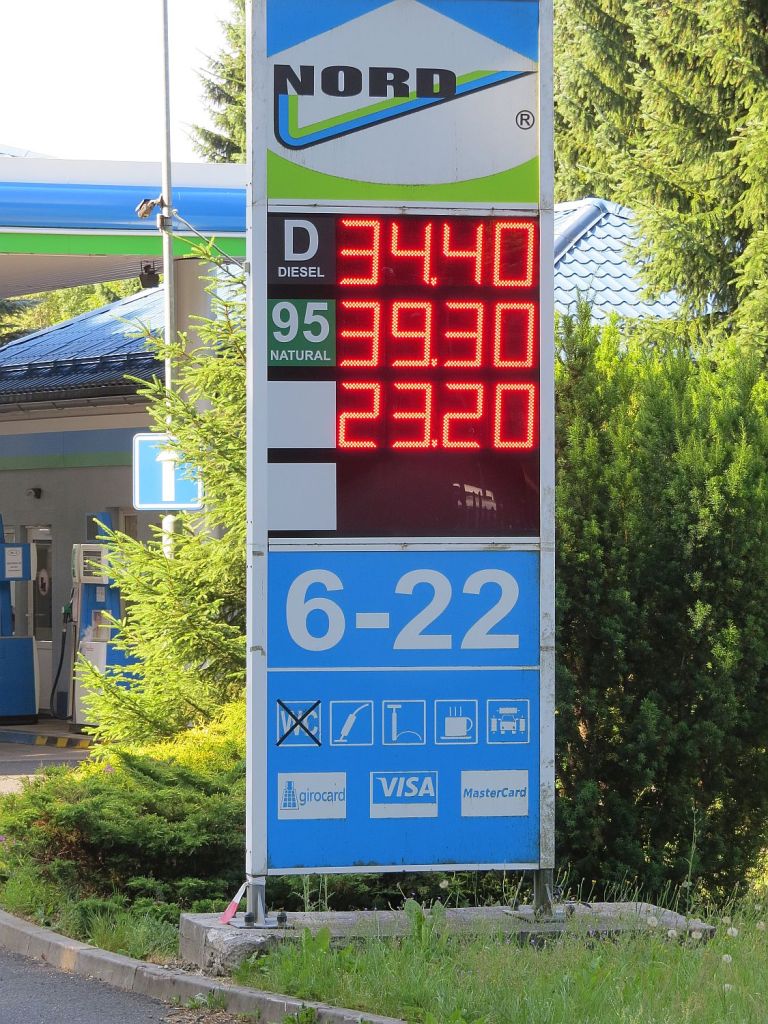 An der Tankstelle wechselt automatisch der Preise von Kronen in Euro. Jeder ist gut informiert.
