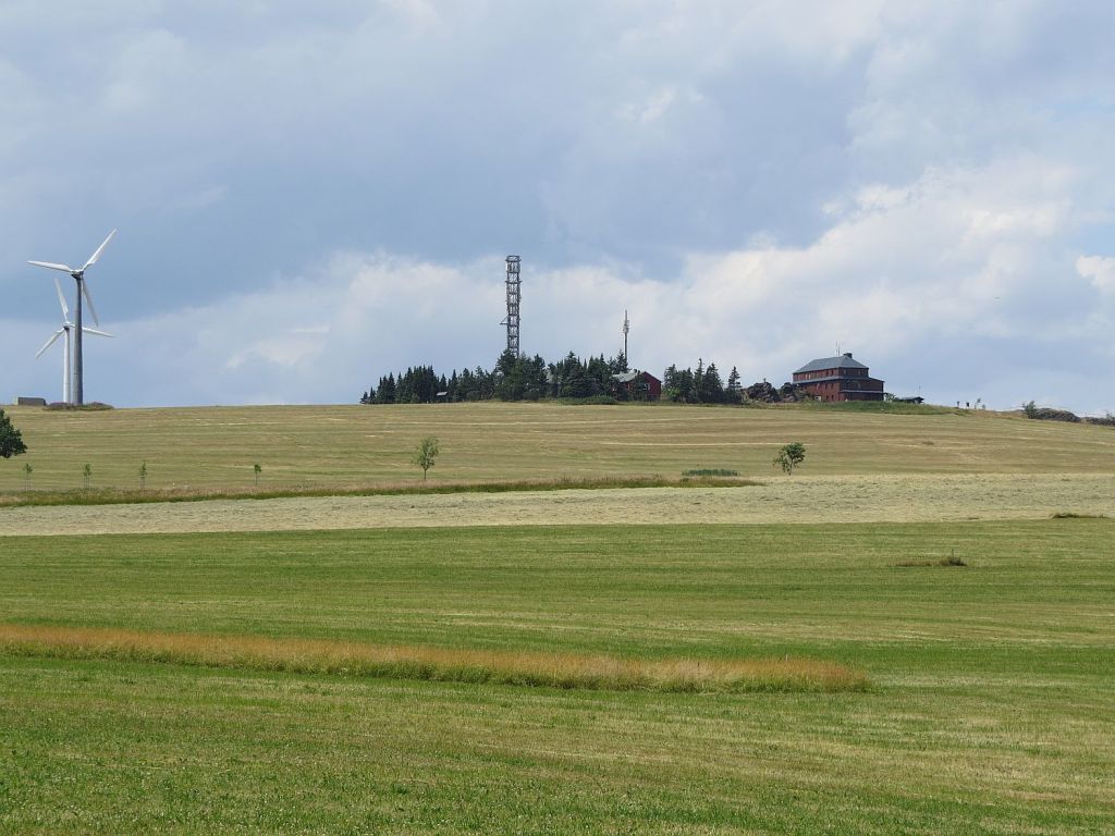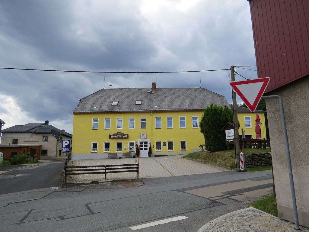 Zehn Meter weiter war eine Bank und dort verbrachte Helmut die Zeit bis zum Kaffeetrinken zu Hause. Ich sollte mich doch kurz dazu setzen. Gesagt getan und ein nettes Gespräch ergab sich. Er war mit dem Leben in der DDR schon zufrieden und wie immer: Wir kannten es nicht anders. Dann tauchten zwei Wanderer auf die noch bis zum Hirtstein wollten und aus Rübenau gekommen waren. Es gibt wohl Wanderung mit Gepäcktransport und gebuchten Übernachtungsplätzen. Dass machten die beiden. Der dritte hatte Blasen am Fuß und wurde vom Gastwirt Erik aus Rübenau am Nachmittag zum Hirtstein gebracht. Wie es sich im weitern Verlauf des Gespräches ergab hatten alle dort übernachtet wo ich jetzt auch bin. Bevor ein größerer Schauer runterging war ich in der Pension. Wer war nicht da – Erik, er fuhr gerade den Fußkranken zum Hirtstein.
